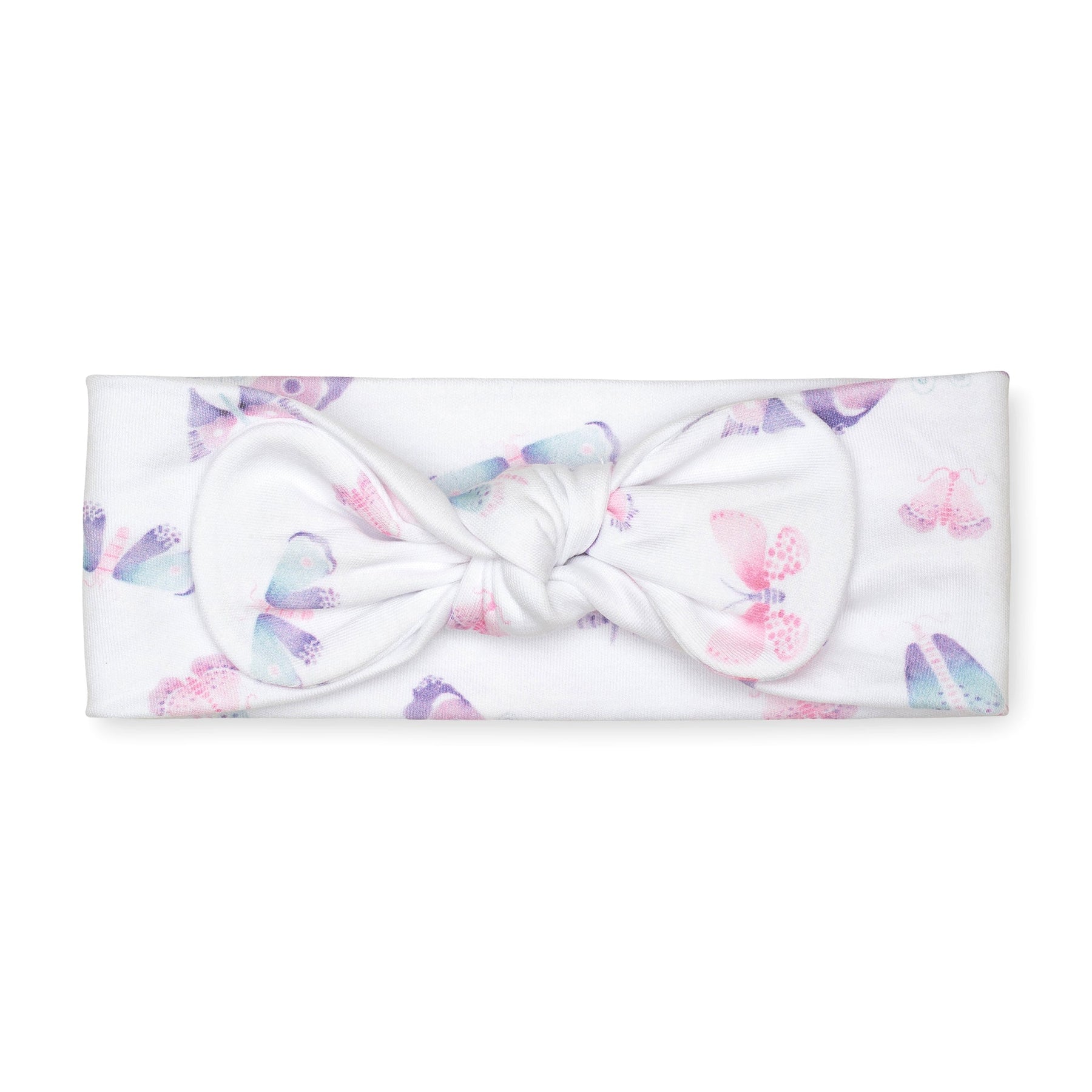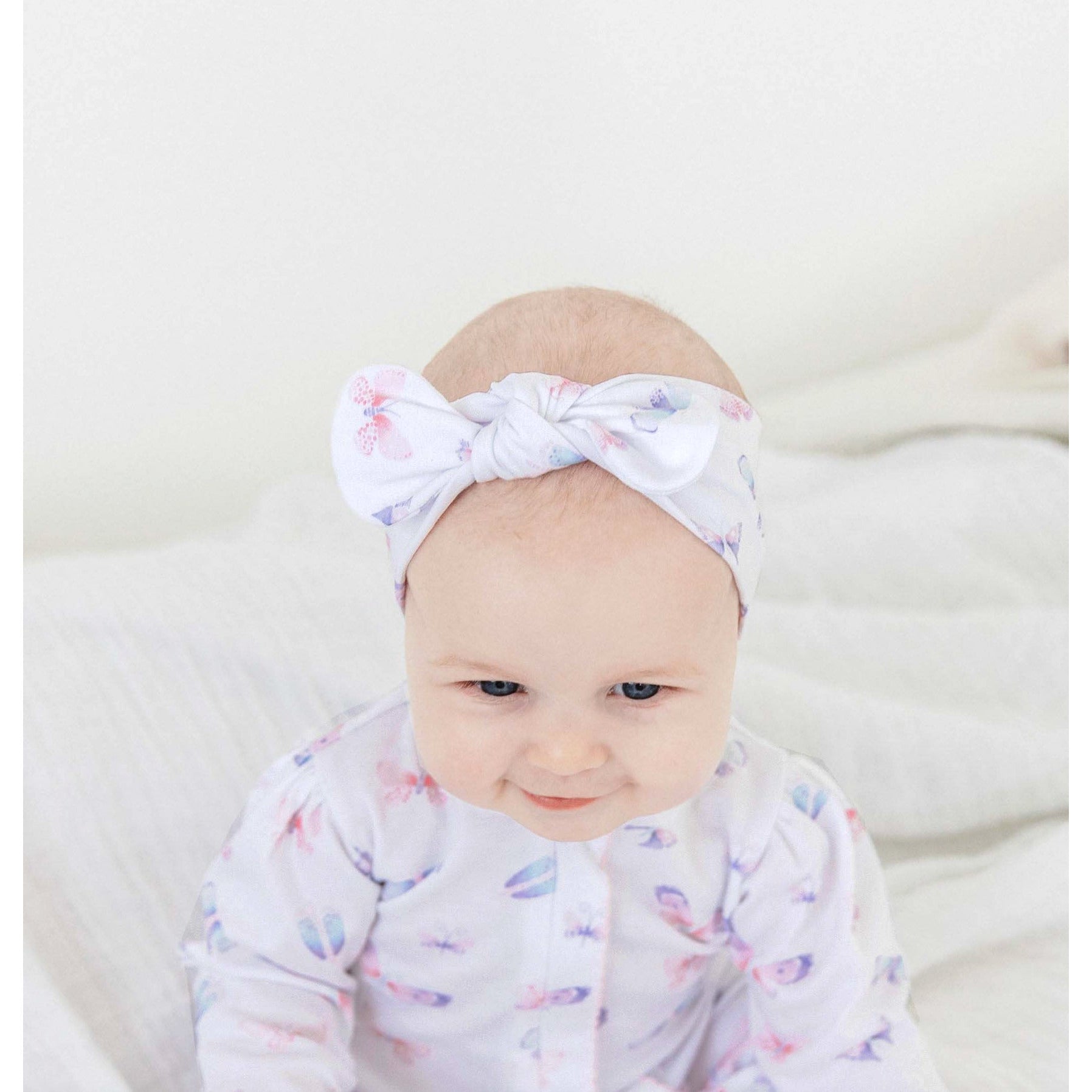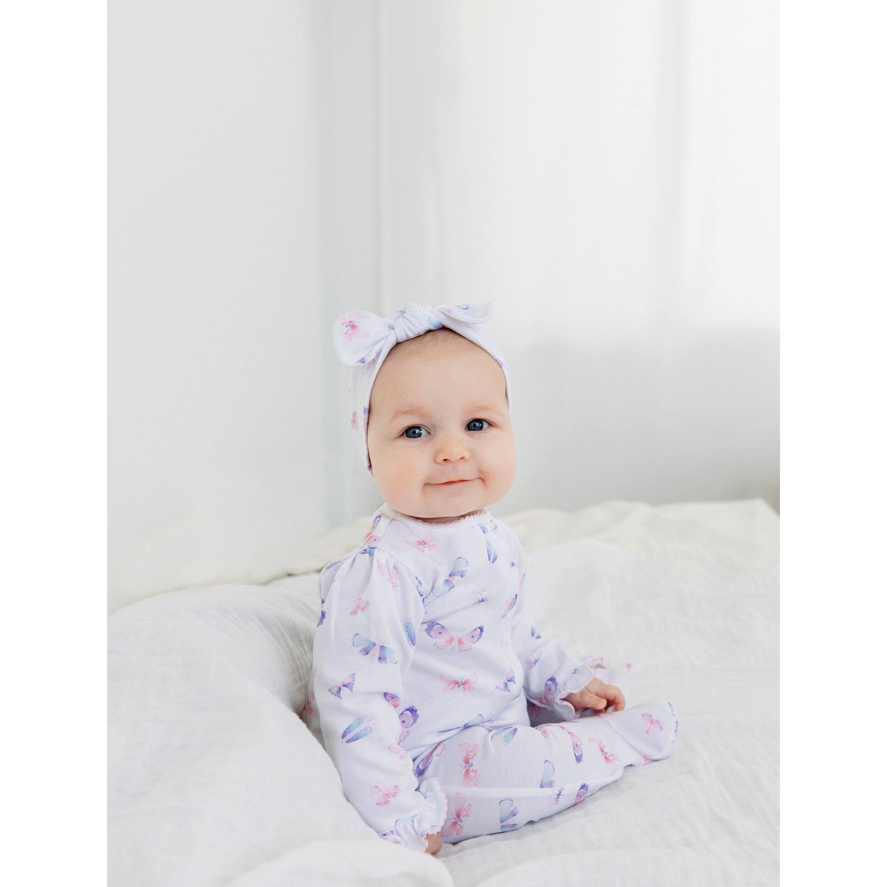 Add the perfect touch to any outfit with this knotted bow style headband for a look that is as sweet as she is. Pairs perfectly with our blankets, footies and bibs.