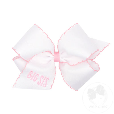 Wee Ones Mediumium Grosgrain Hair Bow With Light Pink Moonstitch Edge And "Big Sis" Embroidery Bow, One Size