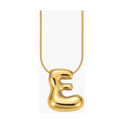 Cape Diablo-Golden Glow Bubble Letter Initial Necklace-E