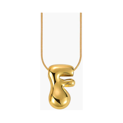 Cape Diablo-Golden Glow Bubble Letter Initial Necklace-F