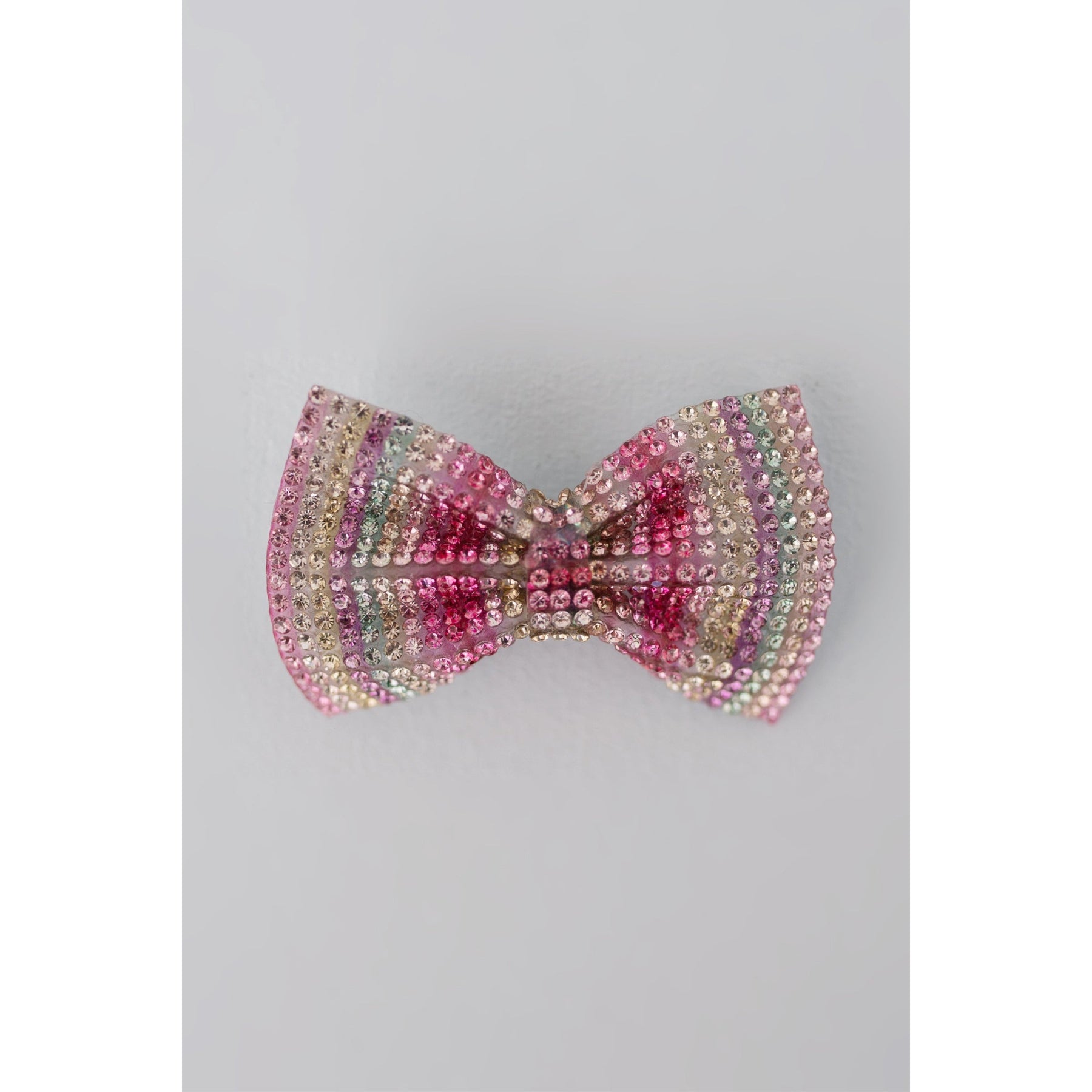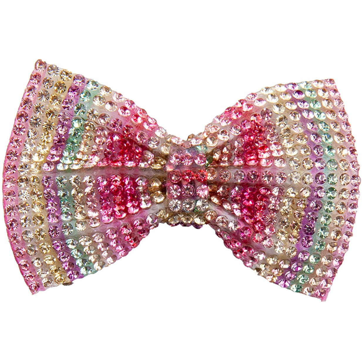 Great Pretenders USA's Boutique Gem Bow Hairclip is made from an alligator clip to sit securely in your child's hair. This rainbow bow clip is covered in rhinestones to add plenty of sparkle to any outfit!