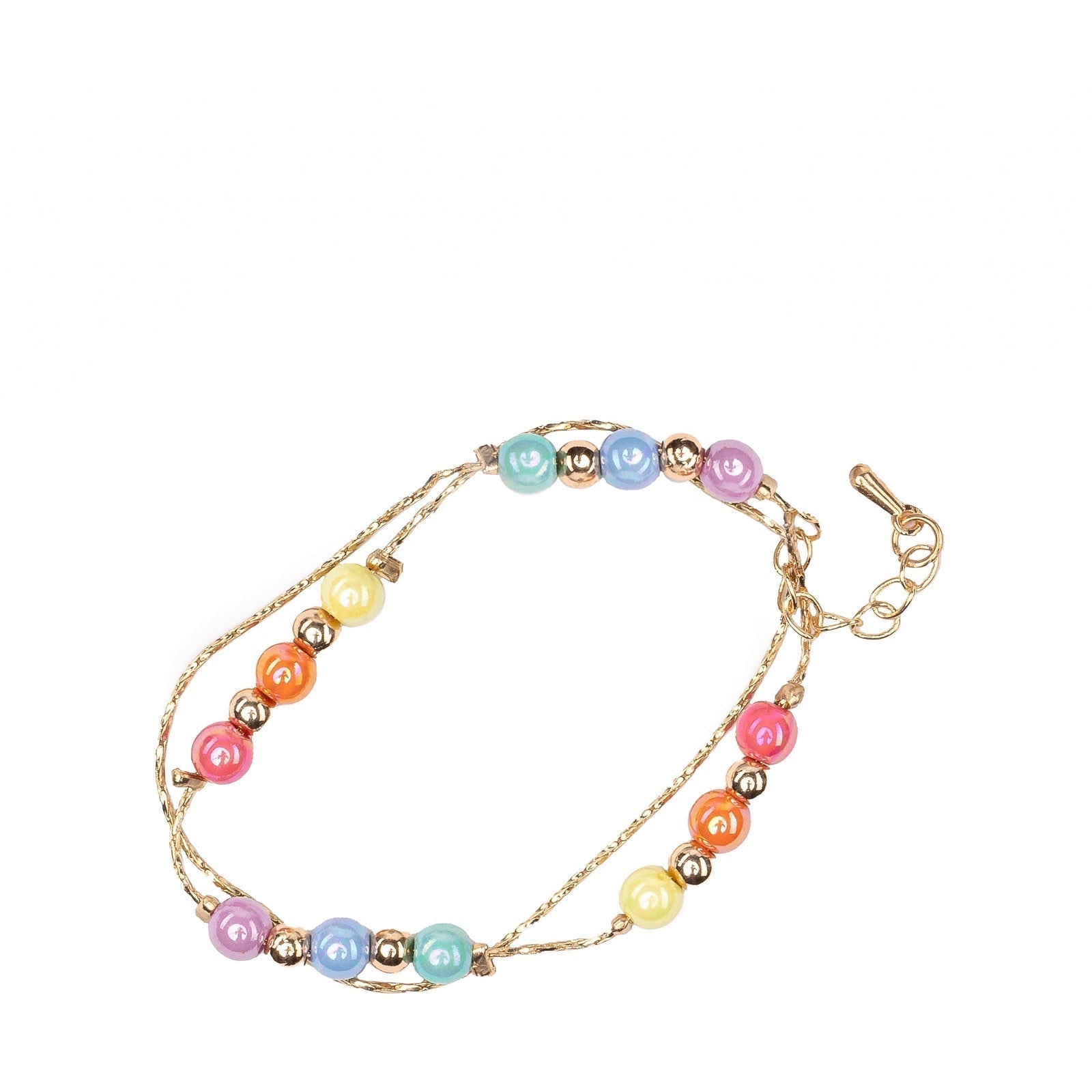 A unique pairing of dainty gold chains with pearly rainbow & metallic beads makes our Boutique Golden Rainbow bracelet as elegant as it is fun. Pair it with the Boutique Golden Rainbow necklace to complete the look.