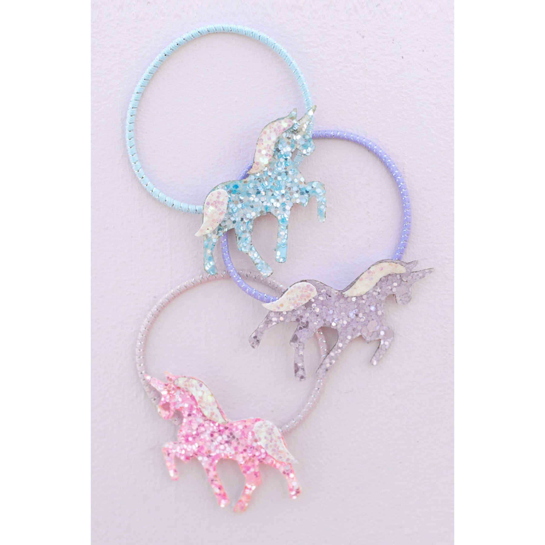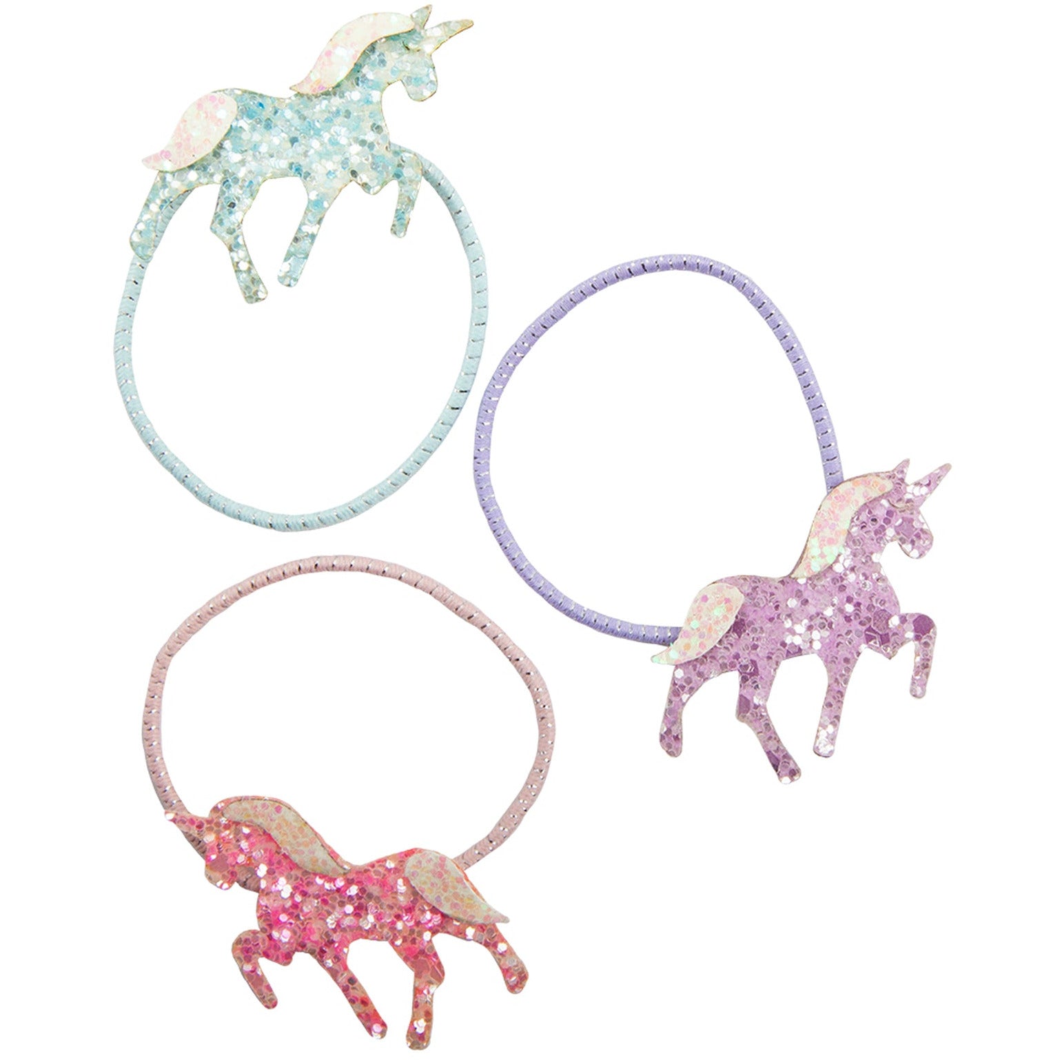 Great Pretenders USA's Boutique Pretty Pony hair elastics come in a pack of 3 and feature a variety of colors including pink, purple and blue. Each ponytail comes with a glitter pony. They are made from soft, stretchy material that is gentle on hair and won't break or snap easily. They are stretchy enough to fit most children's hairstyles and are easy to remove.