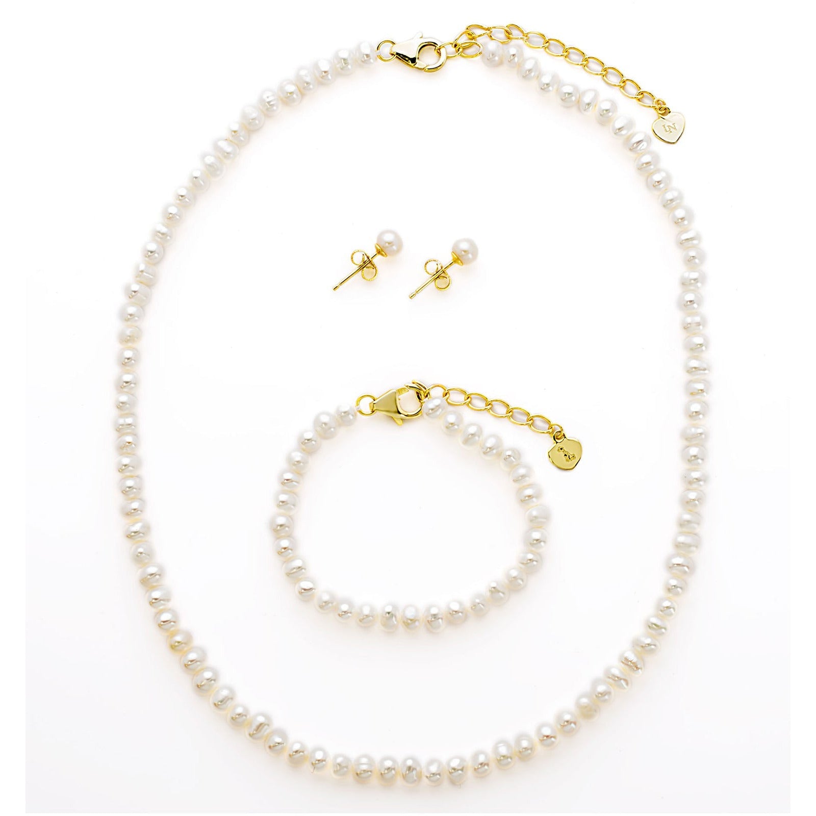 This beautiful genuine freshwater pearl ensemble is crafted of sterling silver with 18K Gold Plating.
