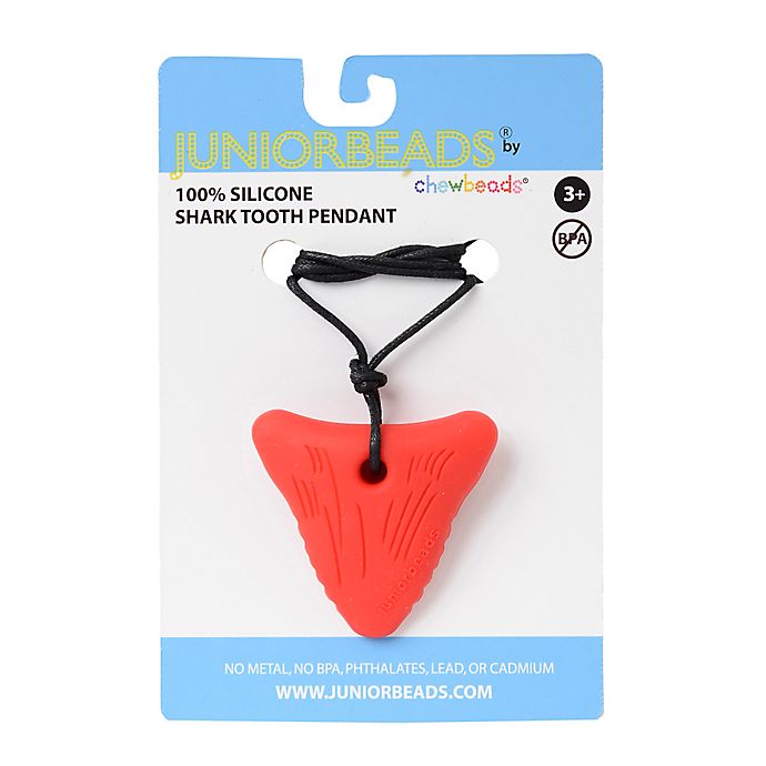 The Chewbeads Juniorbeads Sharktooth Pendant Necklace is a fun and safe accessory for your toddler. The fashionable piece is made of non-toxic silicone and makes a great sensory tool so your little one can safely tug, touch, and chew while wearing it. The Chewbeads Juniorbeads Sharktooth Pendant Necklace is a stylish and safe accessory for toddlers