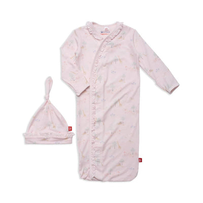 Magnetic Me Pink Serene Safari Modal Magnetic Cozy Sleeper Gown + Hat Set, Newborn to 3 Months