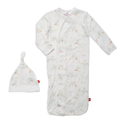 Magnetic Me White Serene Safari Modal Magnetic Cozy Sleeper Gown + Hat Set, Newborn to 3 Months
