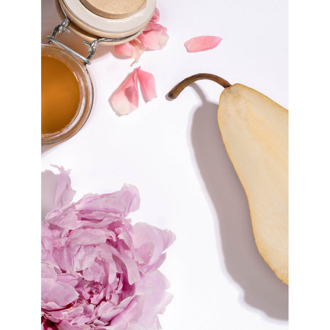 This fragrance evokes the essence of vintage peony growing wild in the garden of an antique farmhouse. A small copse of pear and bergamot trees grow nearby, with the aroma of honeycomb and wild roses mingling in the air.