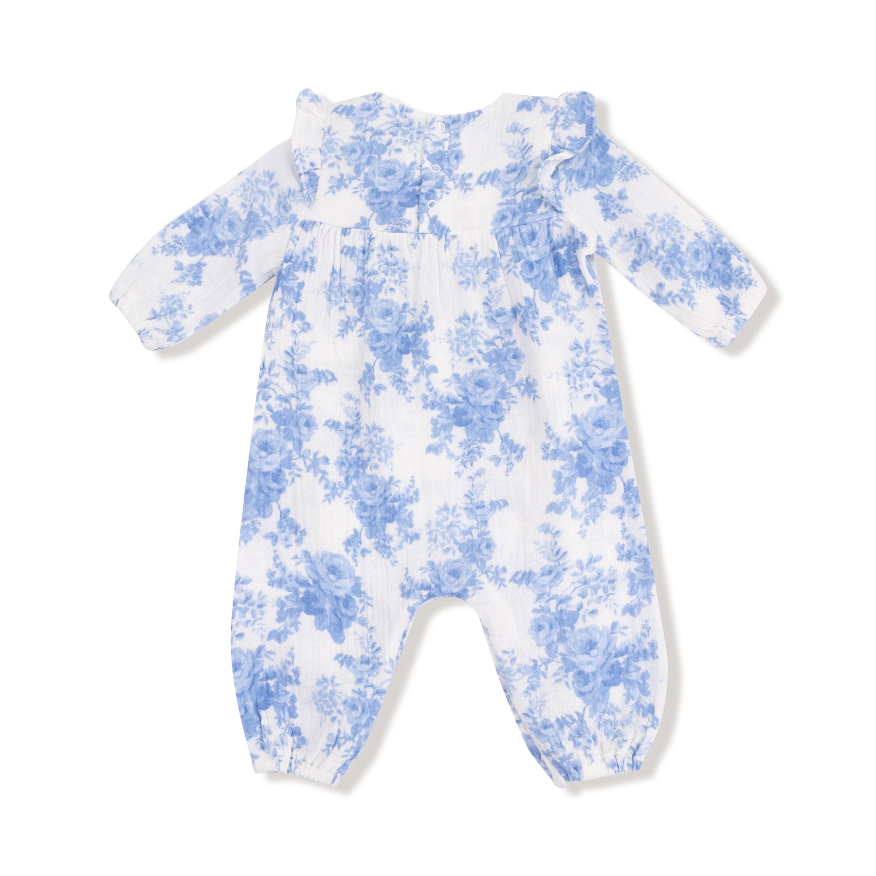 Angel Dear Dream Cottage Floral Blue Ruffle Sleeve Romper