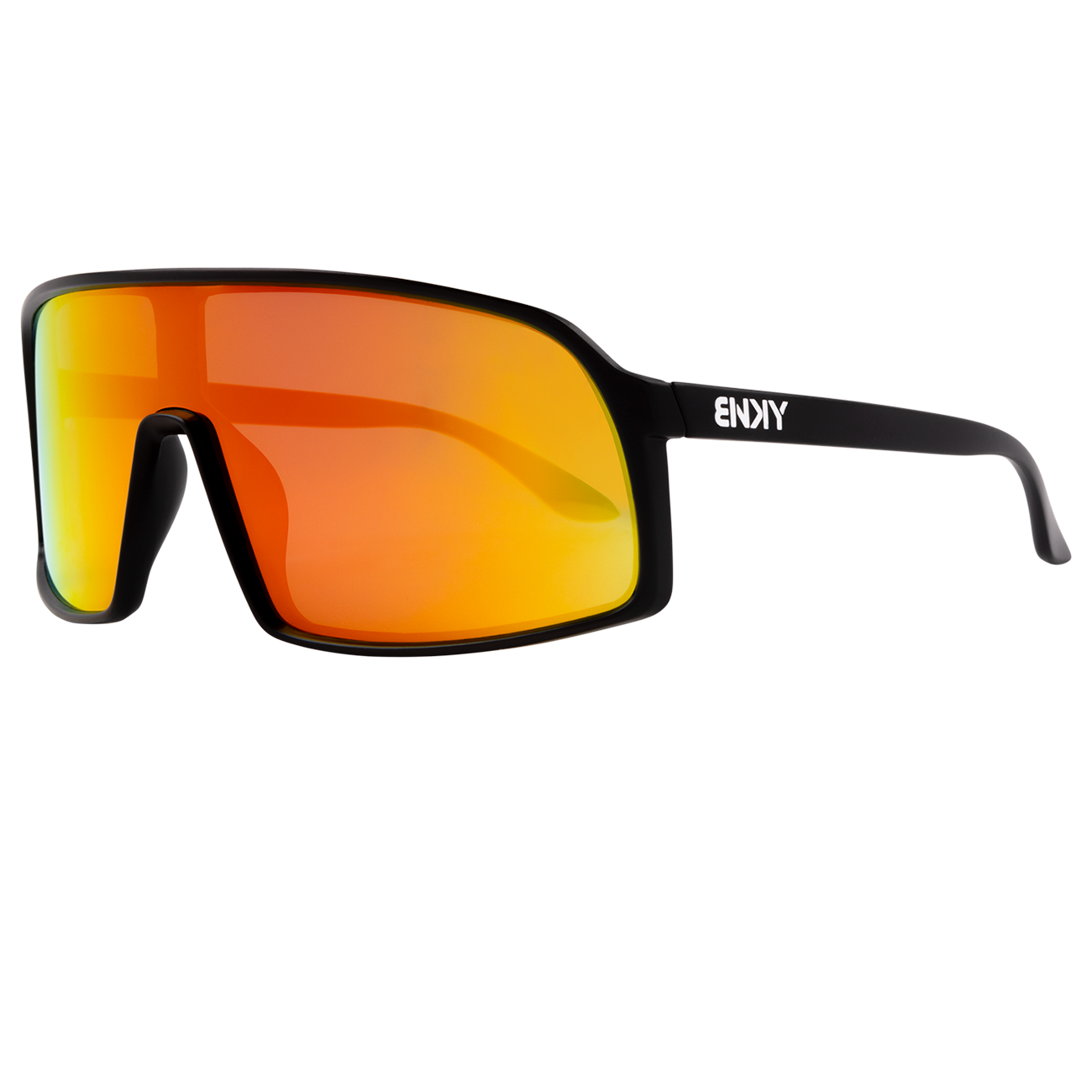 Our Monteverde Tiger Junior sunglasses have black rims with a Orange/Yellow colored reflective lens. Our BinkyBro BNKY signature logo is present on the temples of the sunglasses. Size fits best for kids in the 6 years - 10 years old.