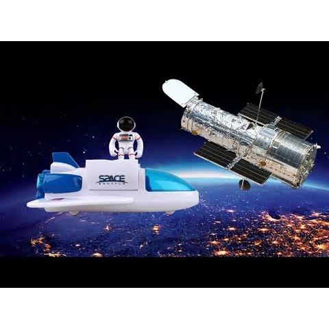 The Space Adventure Series Space Shuttle features fully functional lights, sounds, rolling wheels and an astronaut. Its payload bay doors and canopy open and close, enabling the astronaut to be placed in the pilot seat or on the operational mechanical arm within the spacecraft. Aproximately 9.5 inches x 7.5 inches, plastic. 2 X 1.5 AAA Alkaline Batteries are included. Recommended for children Ages 3+.