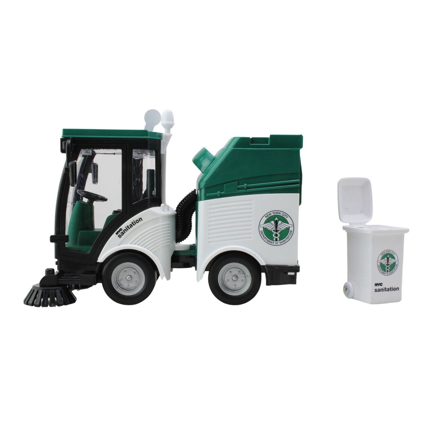 Prepare for playtime fun with our 1:16 Scale Street Sweeper Toy – where cleaning up becomes an adventure! This dynamic toy brings the streets to life with dazzling lights, realistic sounds, and the power of friction-driven excitement. Featuring rubberized wheels and a detachable trash can, it's a hands-on lesson in fun and responsibility. Crafted for young explorers, this sturdy toy promises endless fun in the world of make-believe cleaning. Suitable for ages 3 and up.
