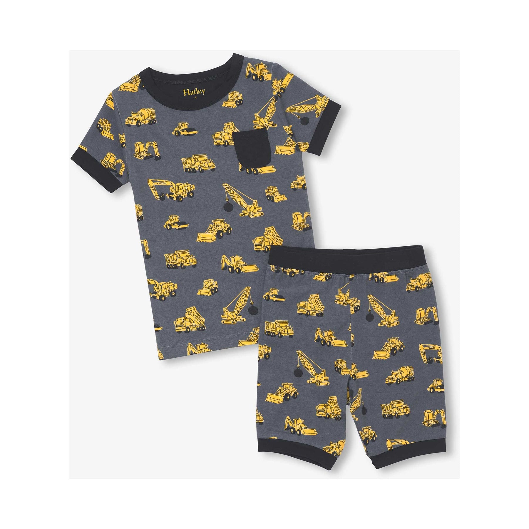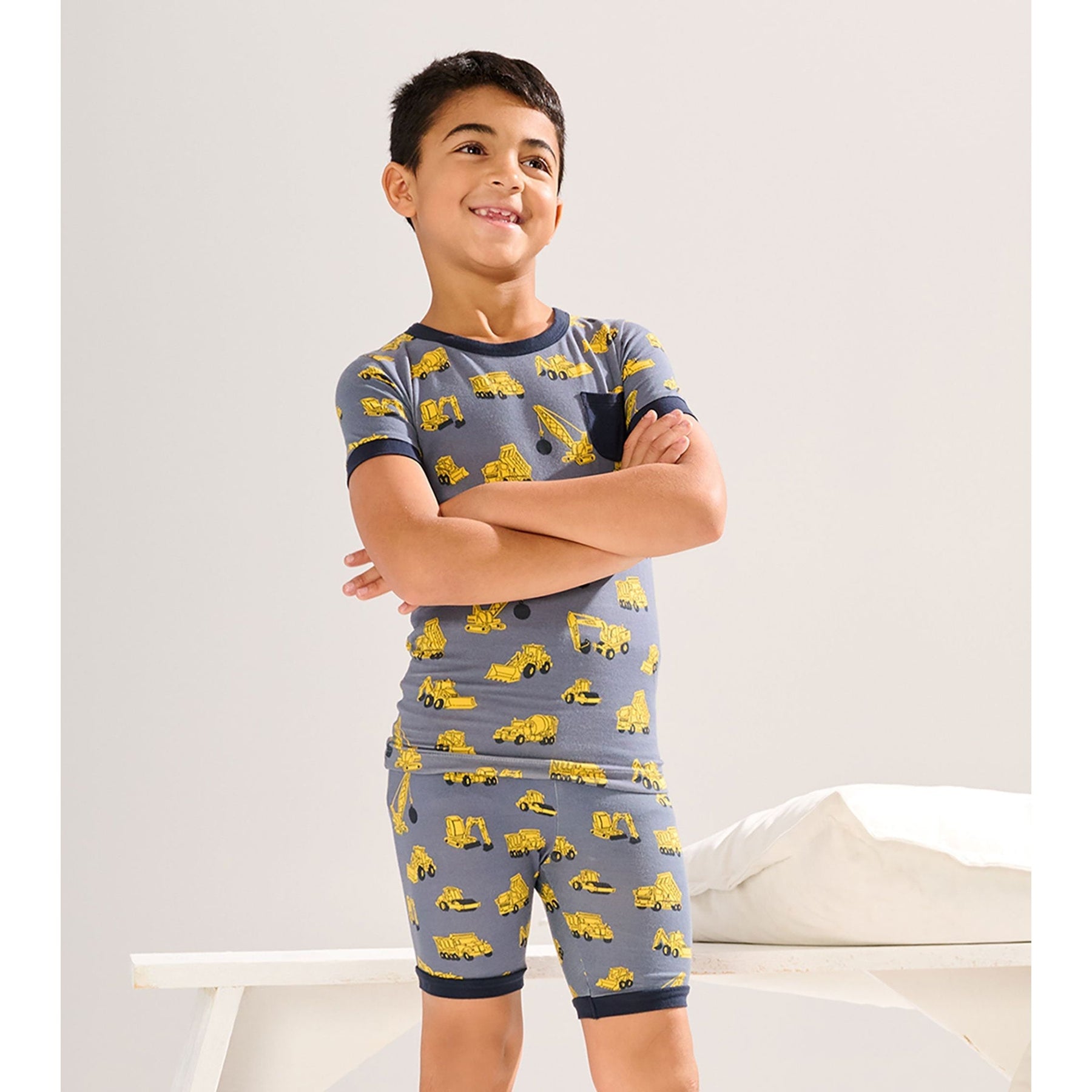 Build sweet dreams with the Boys Under Construction Bamboo Short Pajama Set! Featuring construction-themed prints, this breathable bamboo set includes a short-sleeve top and comfy shorts. Lightweight and stretchy, it’s ideal for keeping him cool during warm summer nights.