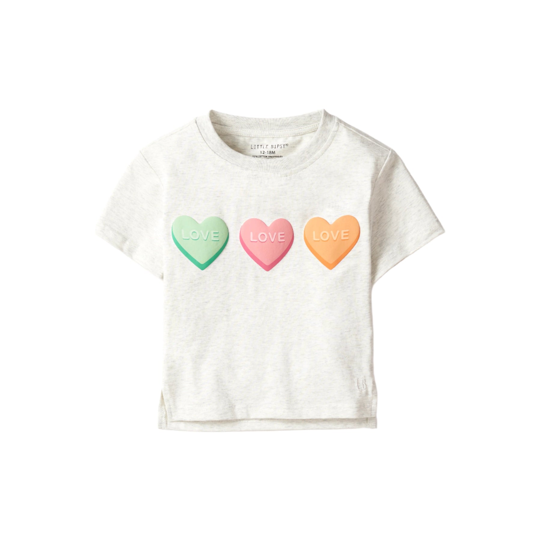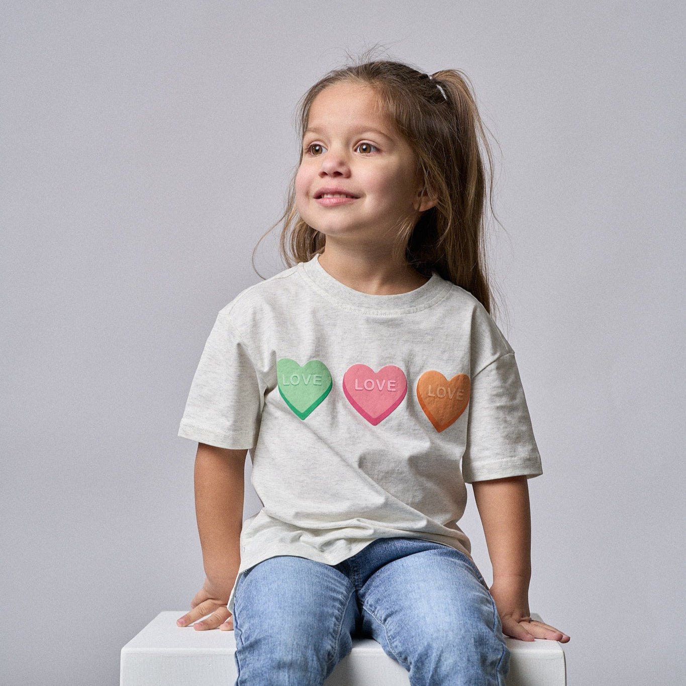 This playful Valentine's Day shirt brings together comfort and festive style, making it a must-have for your little one’s wardrobe. Crafted in a soft, Light Heather Grey fabric, it’s perfect for everyday wear or celebrating the season of love. The bold & bright puff print heart graphic adds a textured, three-dimensional pop of fun.