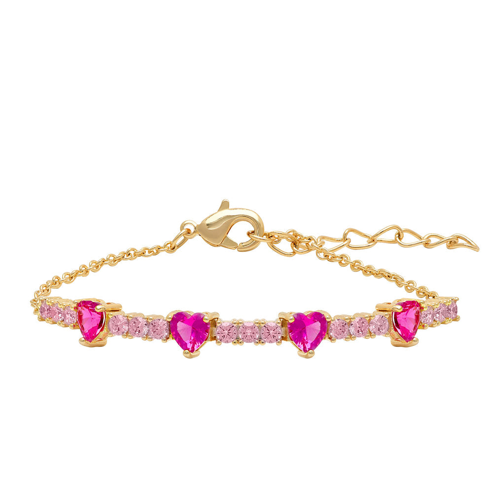 This beautiful bracelet for girls features pink hearts accented with round pink CZ gemstones. Bracelet is adjustable 5.5" x 6.5" and secures with lobster clasp.