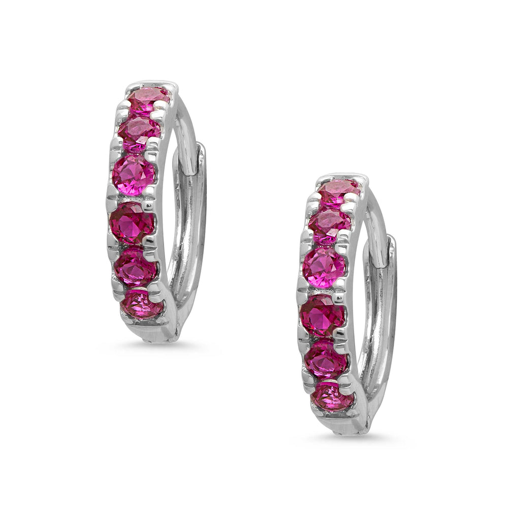 These beautiful hoop earrings for girls feature 3mm CZ gemstones. Hoop size is 15mm and secures with hinged closure.