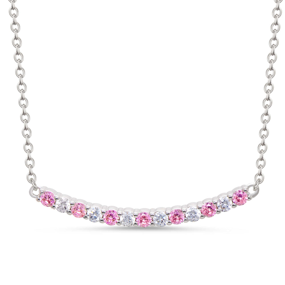 This beautiful necklace for girls features a bar with prong-set 2mm sparkling cz gemstones. Chain is adjustable 14" - 16" and secures with lobster clasp.