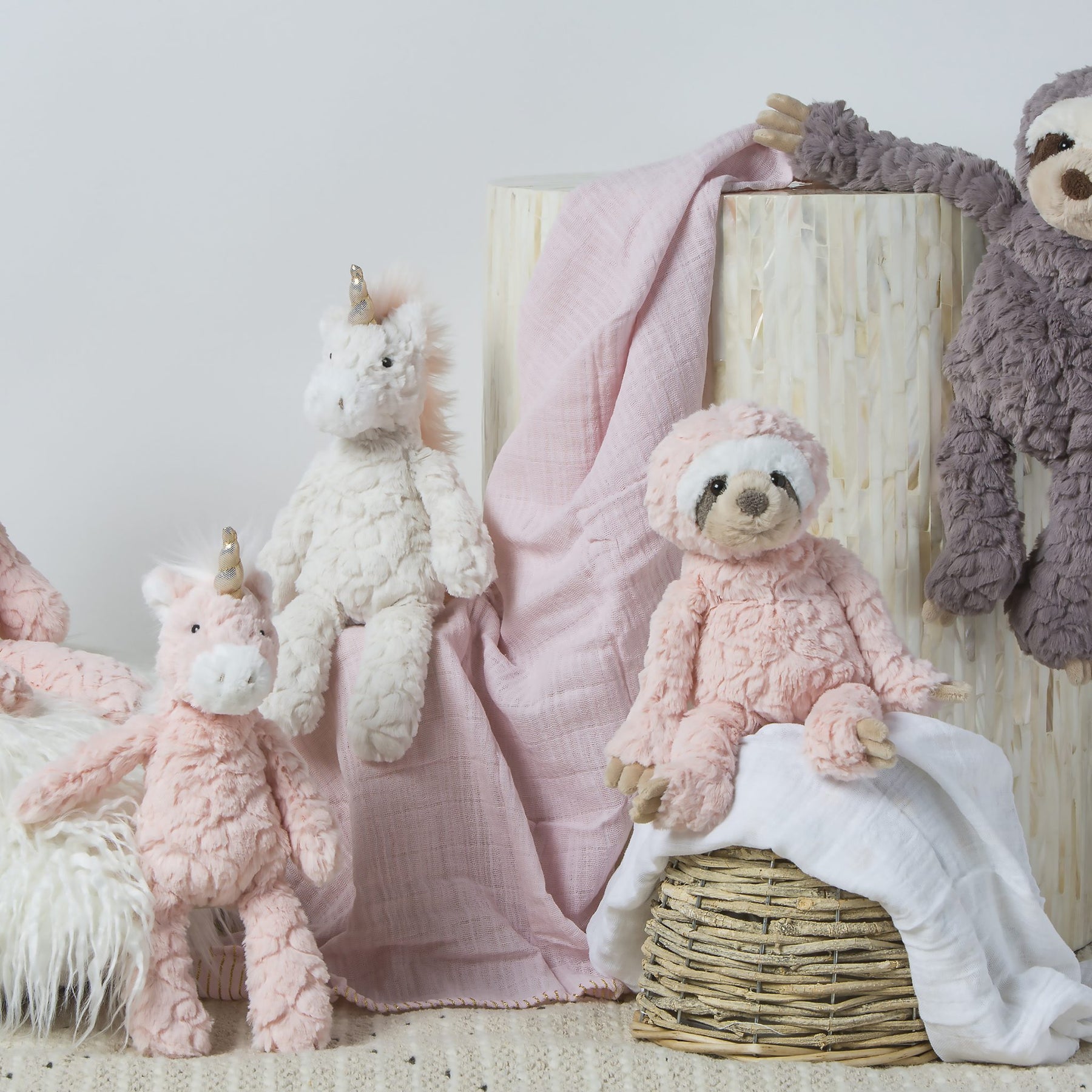 Putty is known for it’s luxurious fabrics, signature soft, muted colors, one of a kind textures. We’ve played up today’s popular animal kingdom stars; Sloths and Unicorns, make Putty Toys the best of the best. Glam unicorn with bling alicorn, signature blush Putty etched fur, and cream mane and tail.
