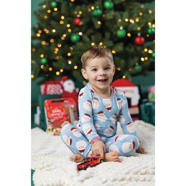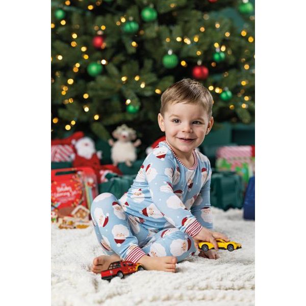 Blue Santa Glow Toddler Pajamas offer a delightful bedtime experience for your little one. This charming 2-piece set features knit bamboo long pajamas designed to provide ultimate comfort and coziness. The enchanting glow-in-the-dark print adds a touch of magic to bedtime, making it a favorite for both parents and toddlers. Sized for 9-12 months, these pajamas are crafted from a soft and breathable blend of 93% Viscose made from Bamboo and 7% Spandex, ensuring a gentle fit that allows for easy movement. Perfect for keeping your child snug and stylish, these pajamas are an ideal choice for a restful night's sleep.