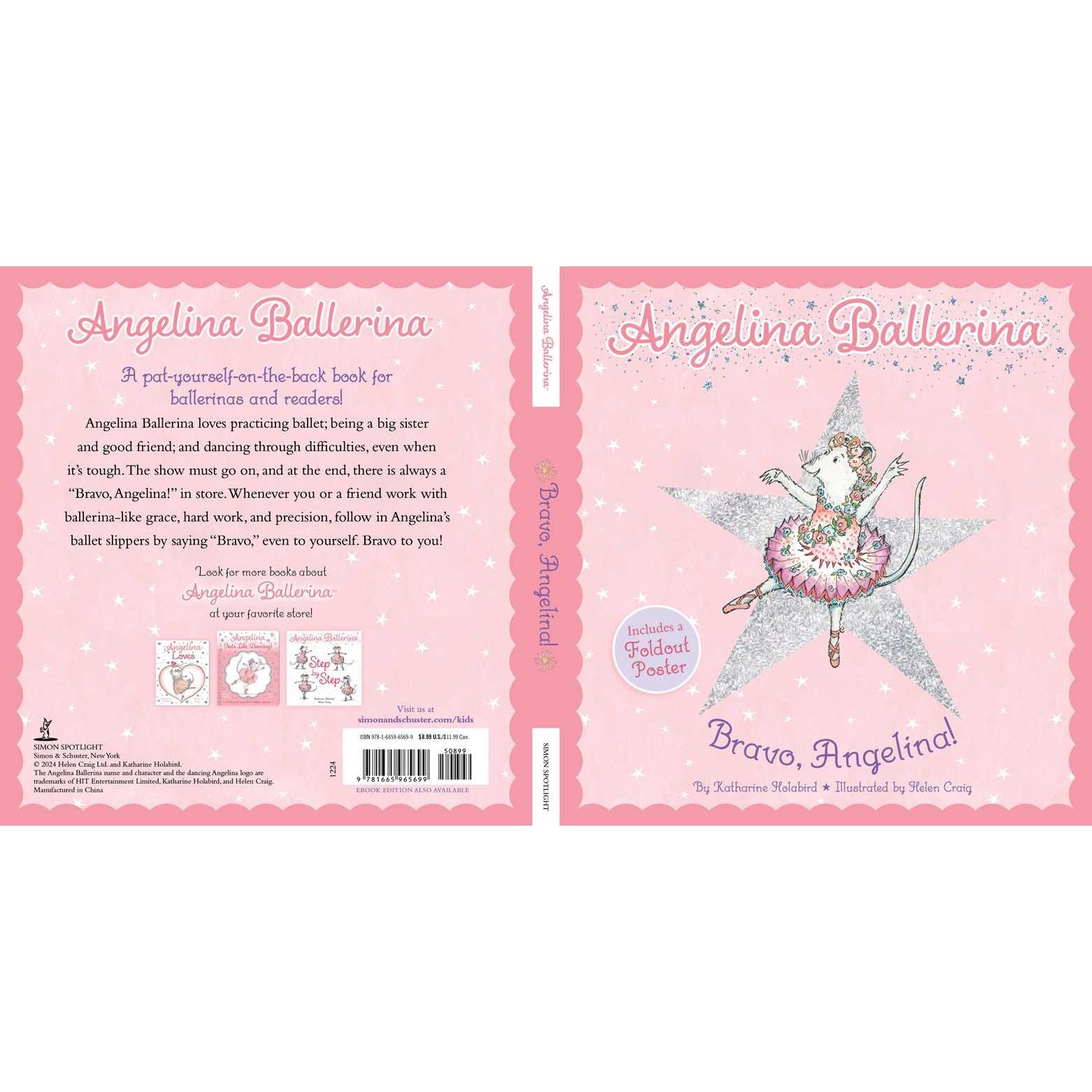 [Simon Spotlight] Celebrate dance recitals, graduations, and other accomplishments with help from this inspirational padded picture book with holographic foil on the cover that follows Angelina Ballerina as she finds reasons to say “Bravo.” This book comes with a removable poster! Angelina Ballerina loves practicing ballet, being a big sister and good friend, and dancing through difficulties even when it’s tough. The show must go on, and at the end, there is always a “Bravo!” in store. Fans can follow in Angelina’s ballet slippers by saying “bravo” to the special people in their lives who are doing their best…and to themselves for their hard work at school, on stage, and wherever they are challenged to perform with ballerina-like precision and grace. © 2024 Helen Craig Ltd and Katharine Holabird. The Angelina Ballerina name and character and the dancing Angelina logo are trademarks of HIT Entertainment Limited, Katharine Holabird, and Helen Craig.