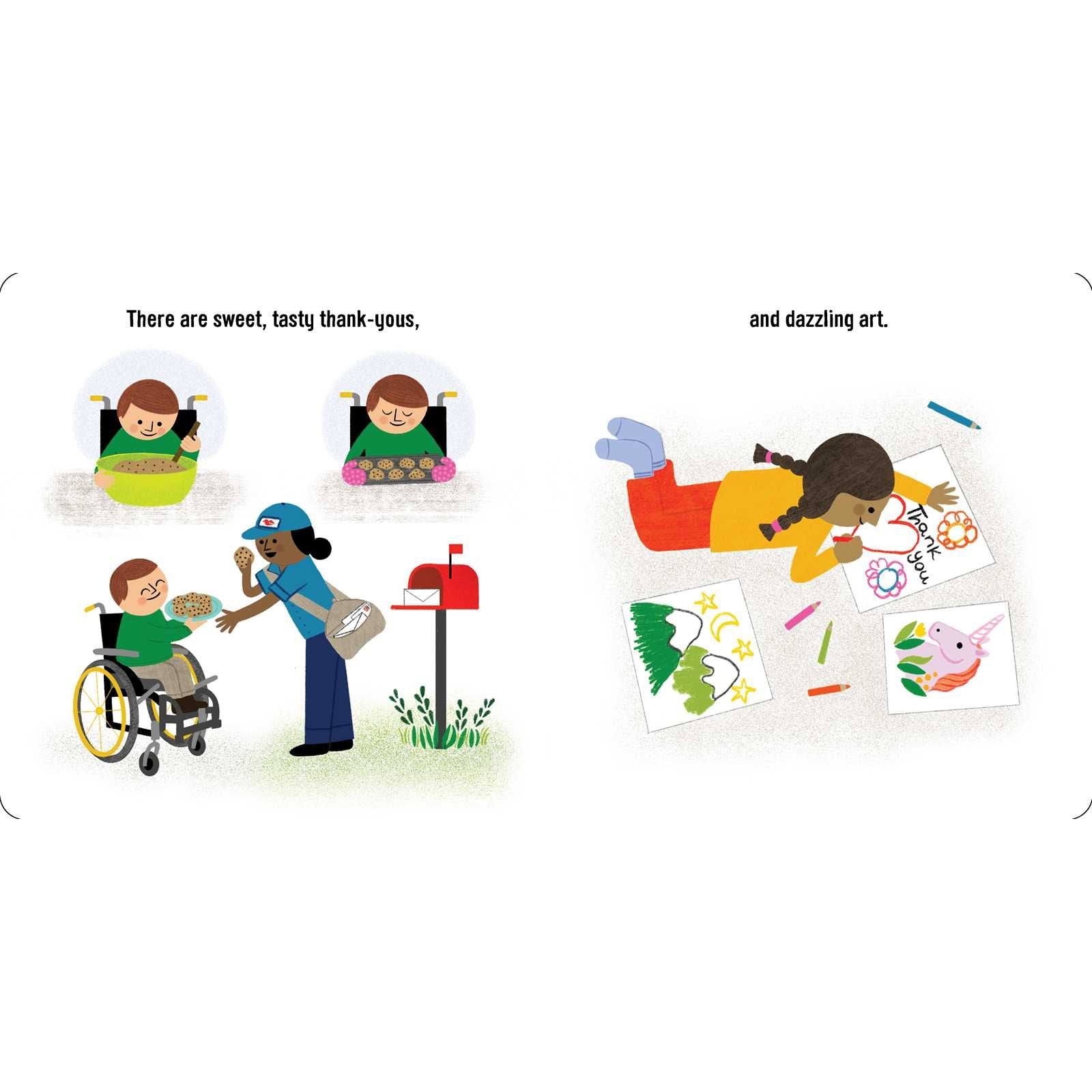 [Little Simon] This joyous board book celebrates the different ways we can say thank you to those around us—from hugging a friend to thanking a teacher, to showing gratitude in even bigger ways! Thanking is easy. Thanking is fun. It shows you are grateful when kind things are done. From thanking your teacher for teaching, to thanking your vet for caring, from sharing a hug, to giving a card, this sweet book shows all the ways we can express gratitude. And as the book builds, so does the scale of the thanks, showing young readers that even if they start small, they can have a big impact.