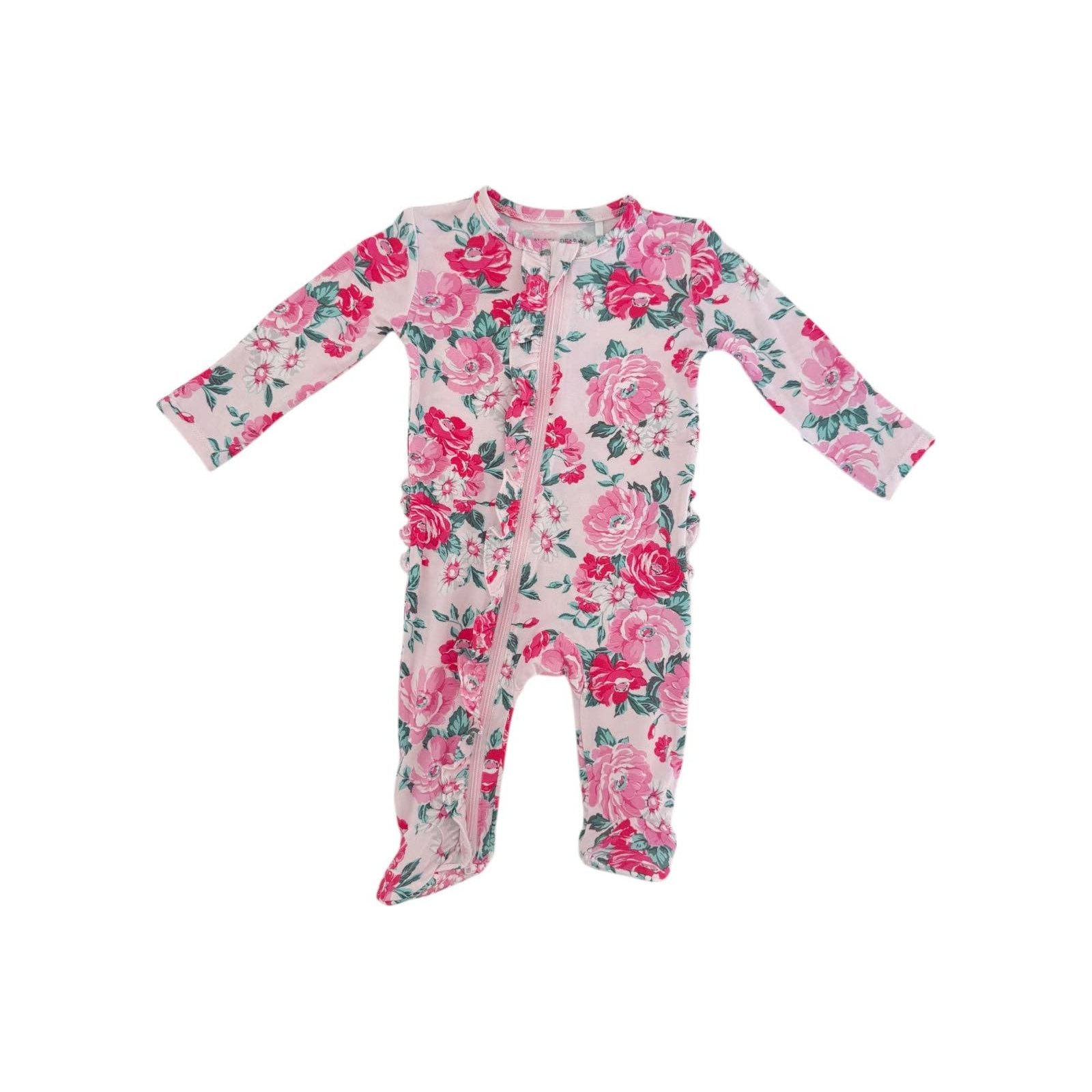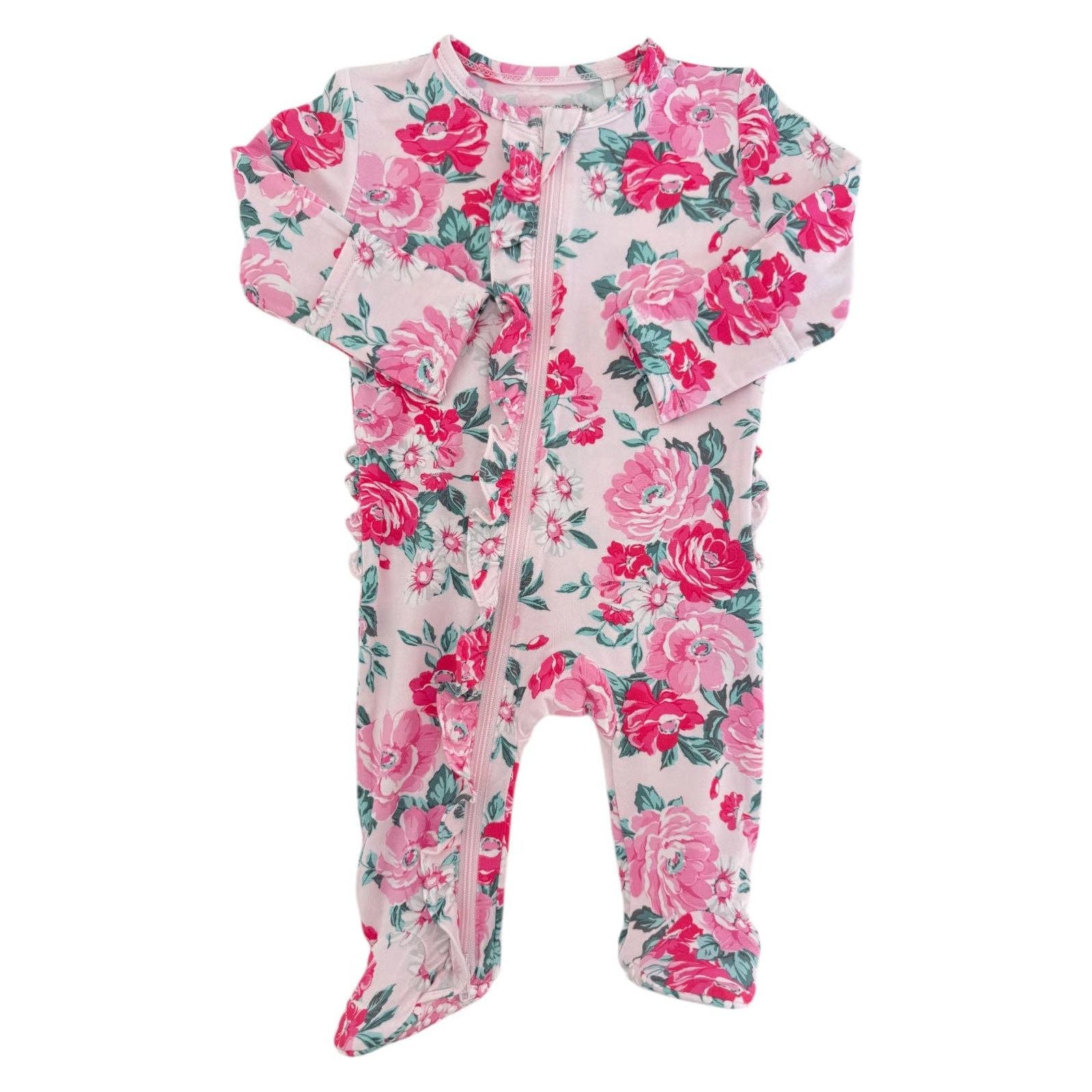 SpearmintLOVE - 2-Way Zip Ruffle Footie, Pink Splendor
