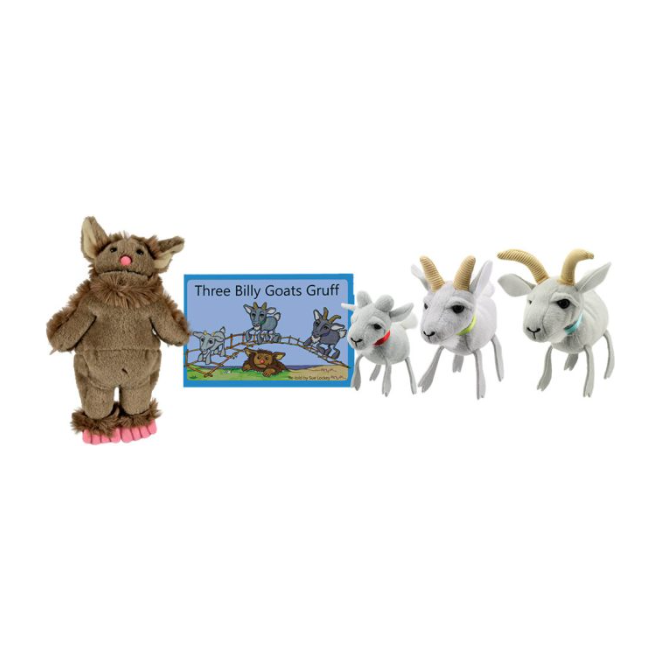 - Bring the magic of storytelling to life with the Three Billy Goats Gruff Traditional Story Set. Featuring a large 'Walking' Troll puppet alongside three Billy Goats finger puppets, each of which has their own coloured collar. You can put your fingers in the Trolls legs to make him walk, run, jump and more! This versatile and imaginative set creates huge amounts of fun. Encourages language and communication development in addition to fine motor skill development and creative play.