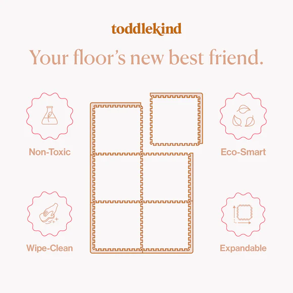 Create a safe and stylish sanctuary for your littles with Toddlekind's Prettier Puzzle Playmats – the perfect baby play mat that combines style and safety. Made from non-toxic EVA foam, this playmat provides a plush and cushioned surface for your children. With its expandable tiles and borders, it blends seamlessly into your home's decor. Step up your floor game with a Prettier Playmat designed for babies, toddlers and beyond.