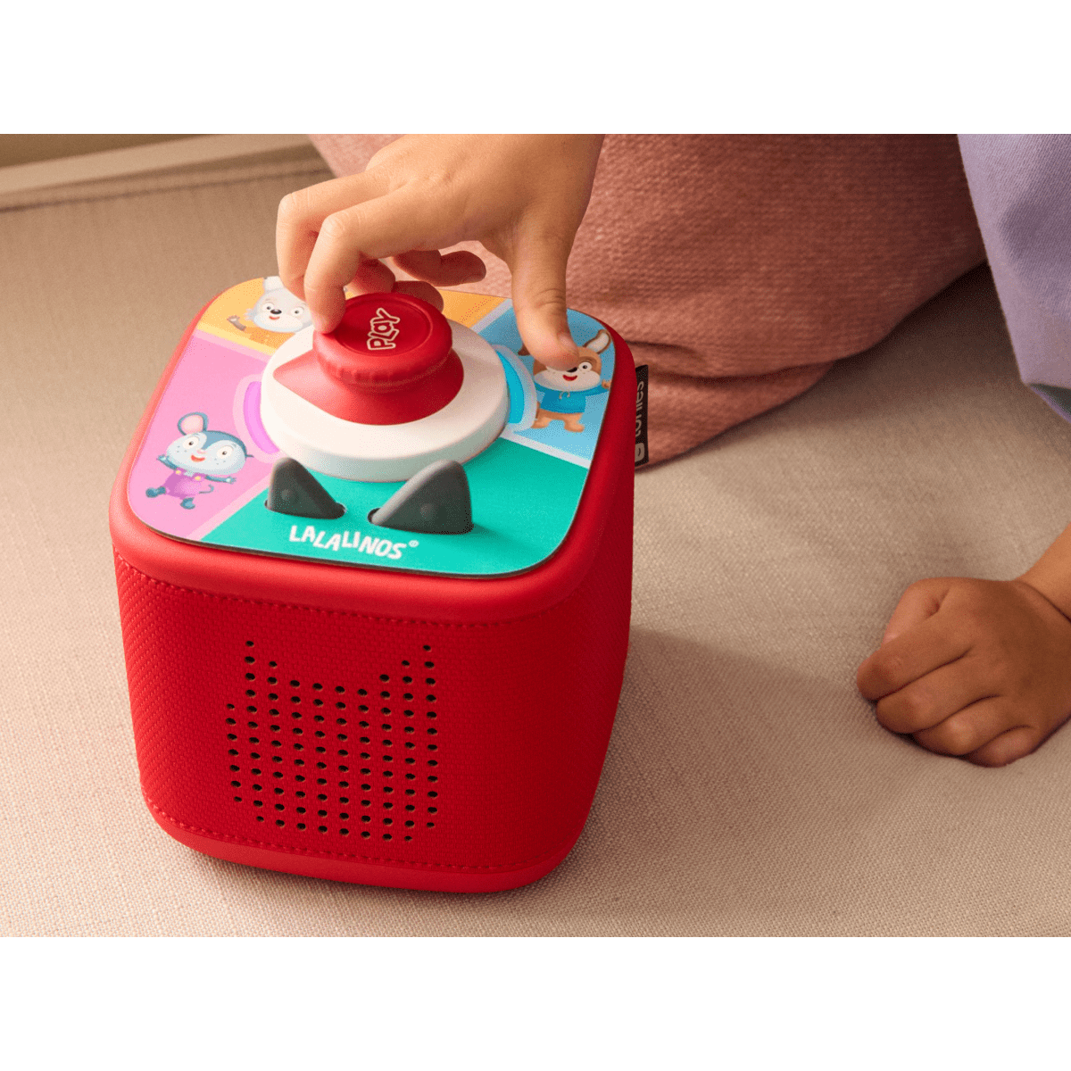 • Place the Tonieplay disc on top of the Toniebox 2 and squeeze an ear to turn on
