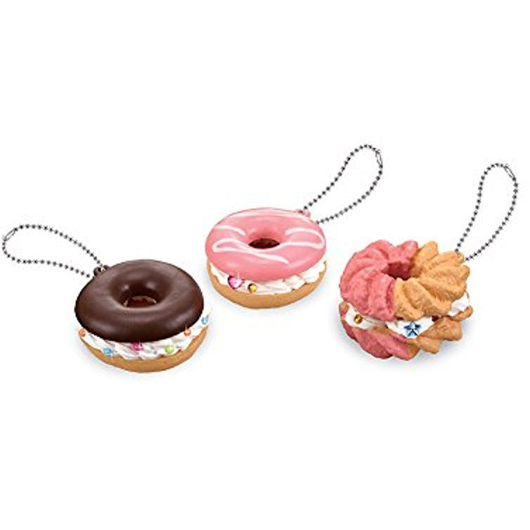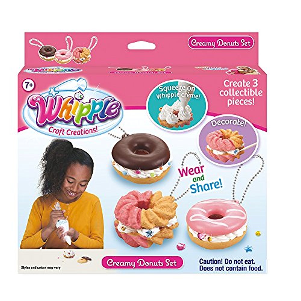 Whipple is a craft toy collectible that features special clay crème and icing pens that can be molded into beautiful keepsake designs from cupcakes to donuts, cookies and more! The Creamy Donuts set includes three keychains, so children can wear and share their beautiful designs! With this set, you can create cruller, strawberry and chocolate donut key chains! Includes white créme, 3 key chains, beads, rhinestones, instructions and other accessories.
