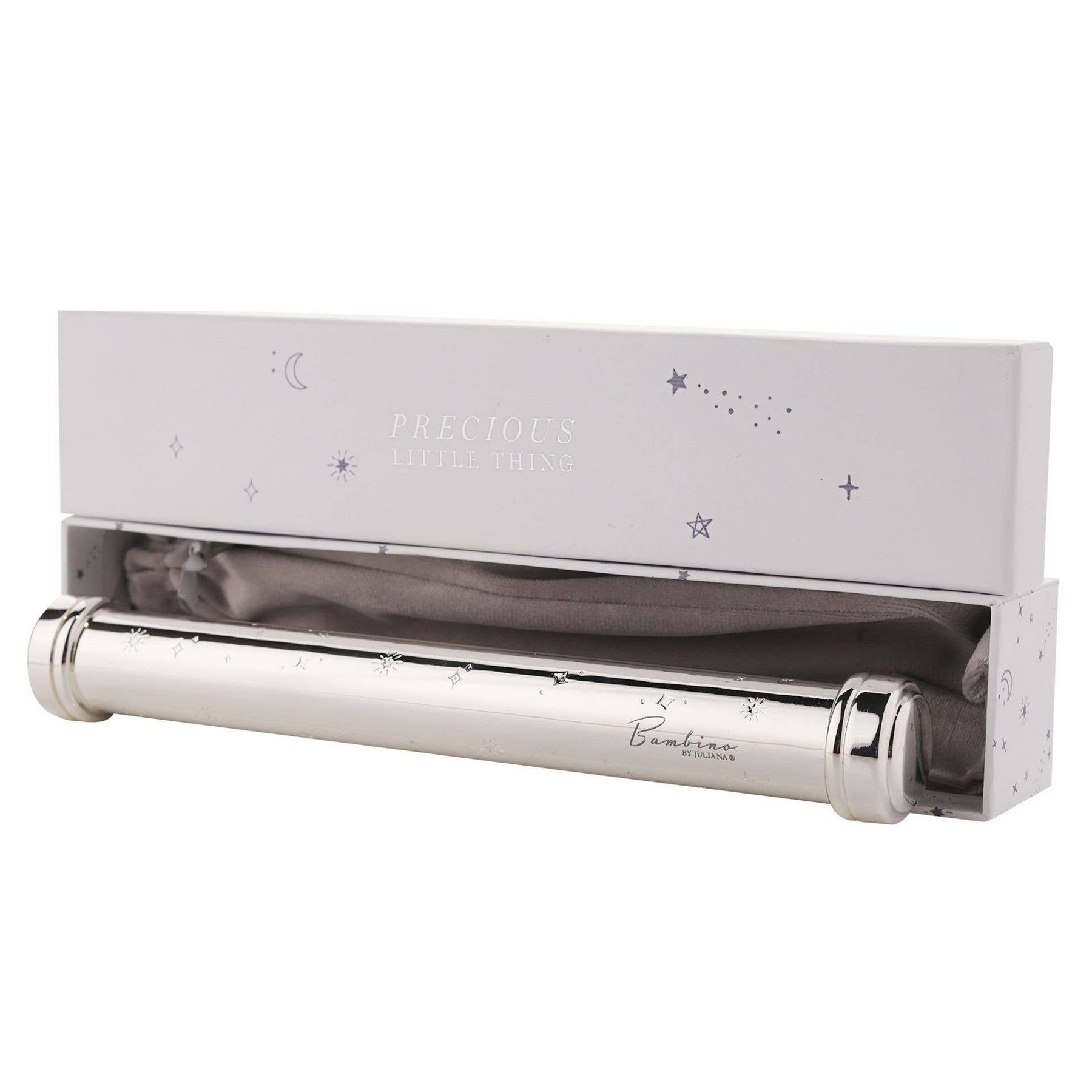 Introducing the Bambino Silver Plated Celestial Certificate Holder by Juliana® – a heartwarming and beautifully crafted piece that captures the essence of love.
