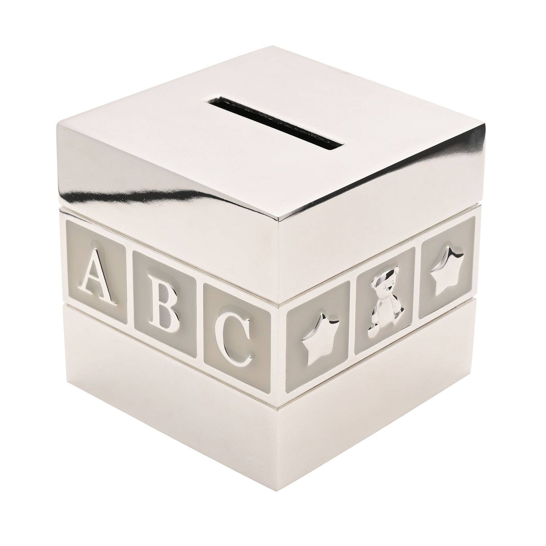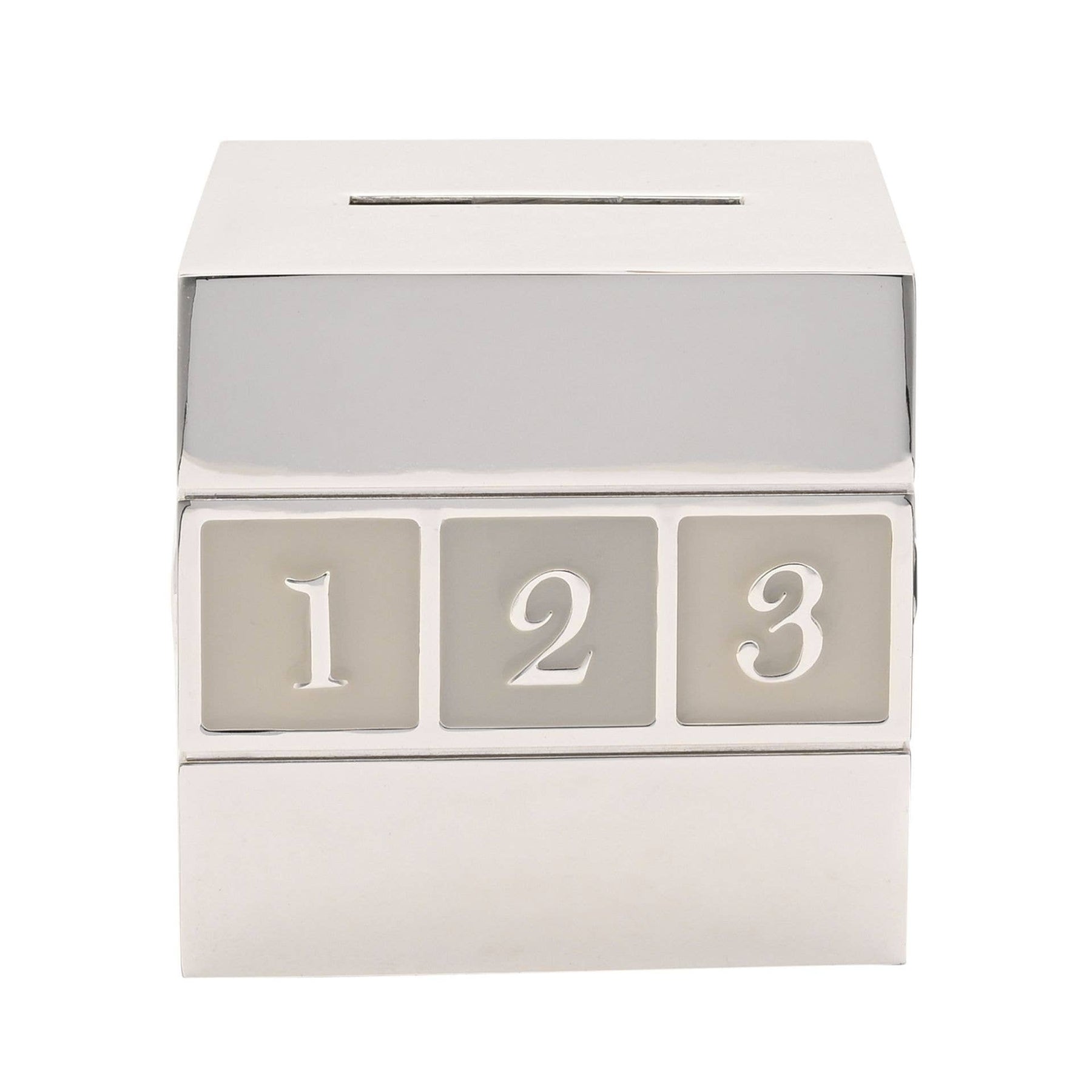 Teach valuable lessons in saving with the Bambino Silverplated 123 Cube Money Box.