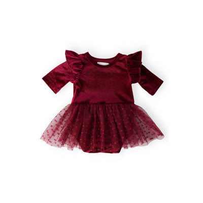 Mila & Rose Cranberry Velvet Tutu Bodysuit