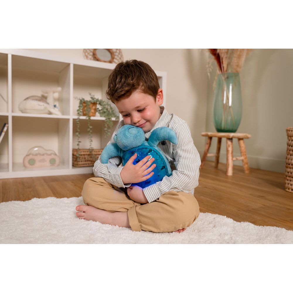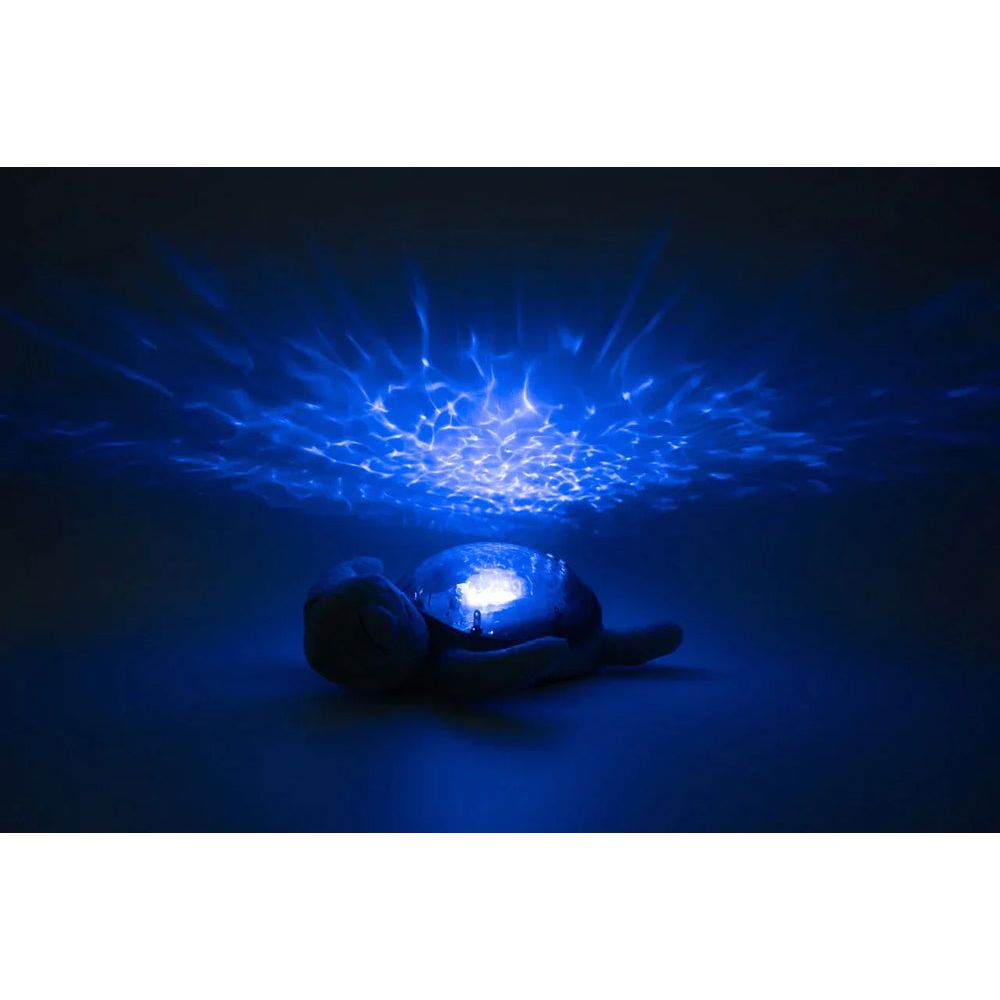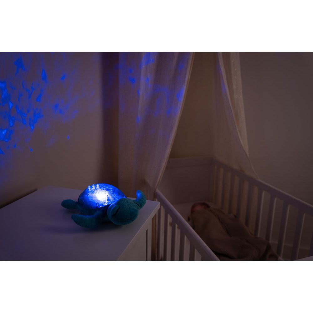 Tranquil Turtle™ Rechargeable - Aqua is a cute musical turtle, made from 100% recycled polyester fabric and padding, that glows with a soft light and projects moving ocean waves on the bedroom ceiling.