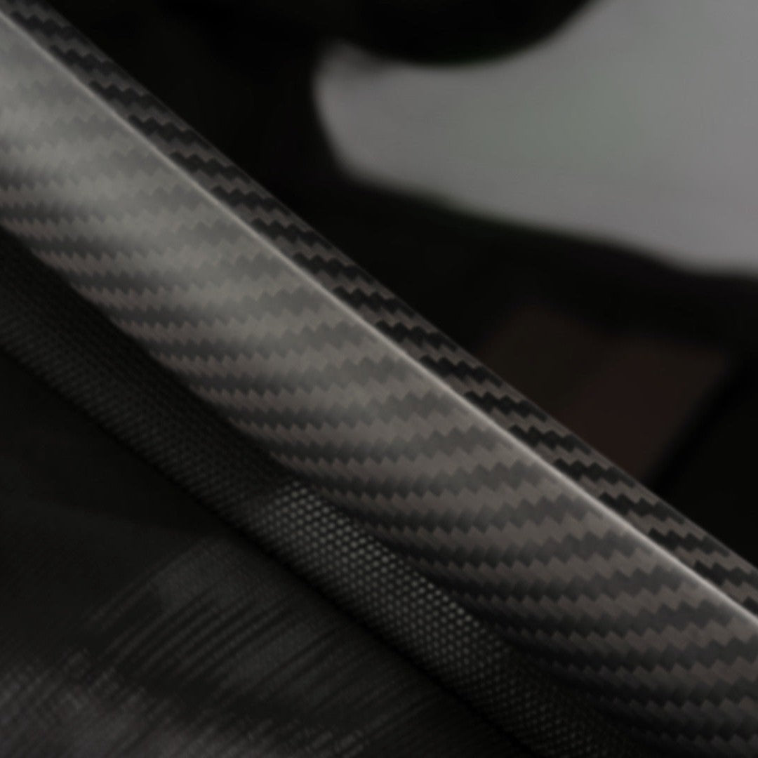 - Carbon fiber’s unique weave pattern on the frame creates a visually striking effect with a modern aesthetic