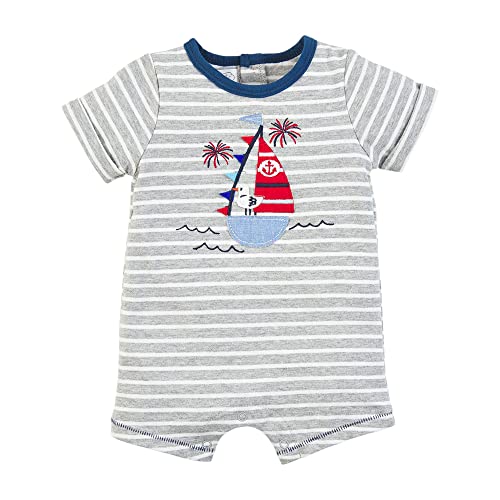 Your little one will be wild and free like the sea in this Sailboat Baby Shortall. The appliqued shortall is made of cotton slub. The shortall features rolled cuff short sleeves. The shortall features an inner leg snap closure. The center of the shortall features a sailboat image.