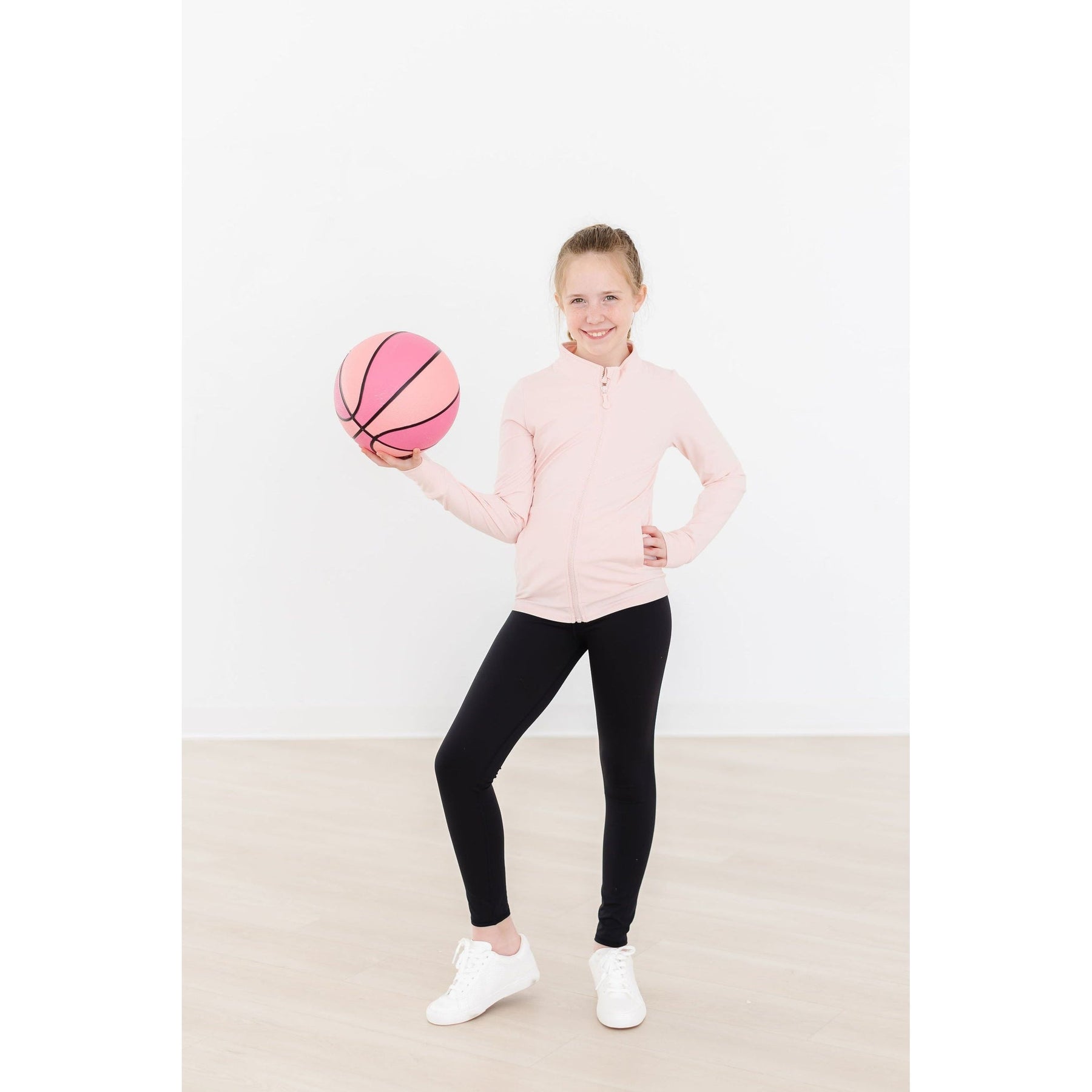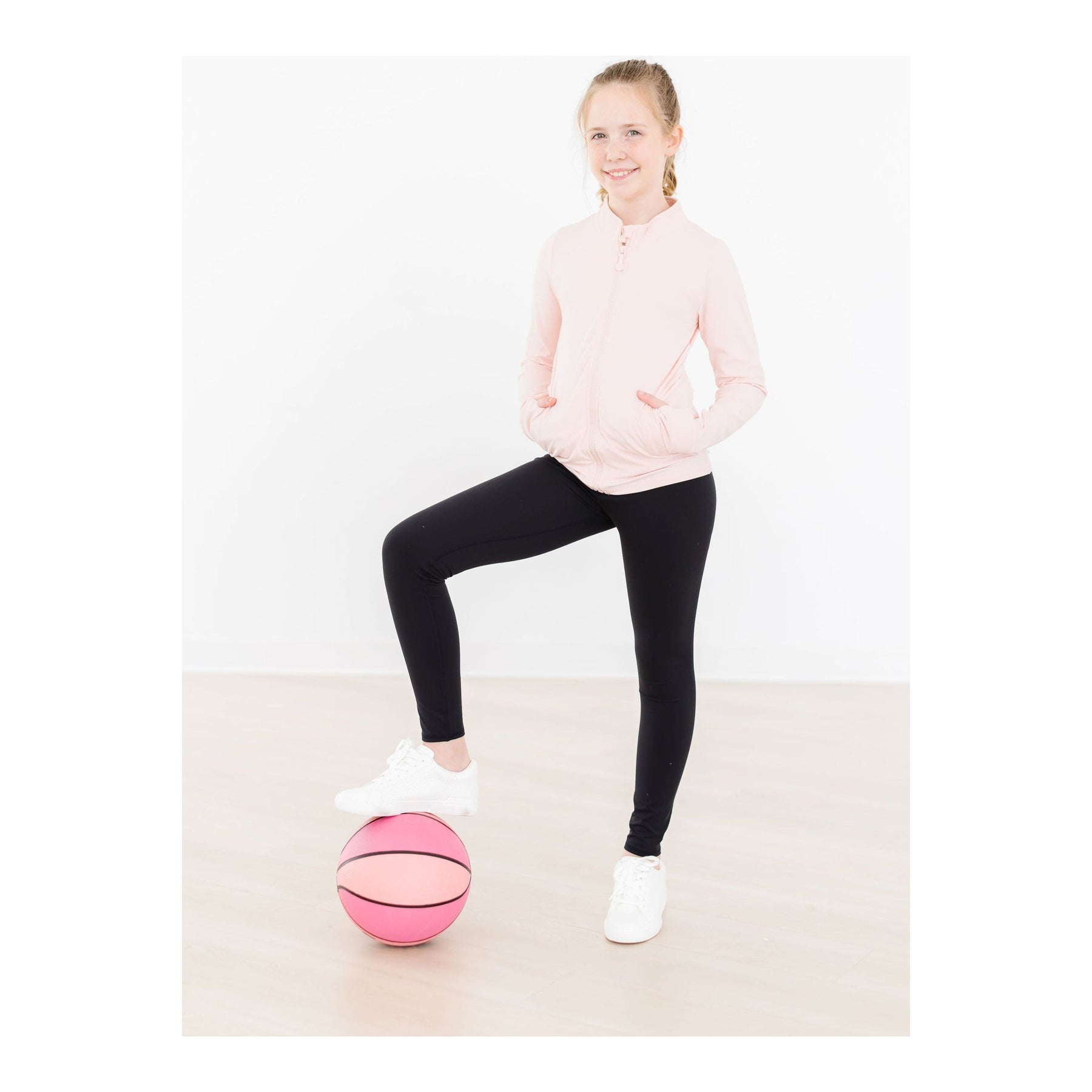 It’s finally here! An active line made for dance, cheer, yoga workouts or just lounging at home. She will love the little details of this jacket like the ROSE on the zipper, thumbholes, and the ruffle on the back. And it has pockets! The line is made to mix and match or buy all 3 pieces in her favorite color in the shorty shorts and active legging.