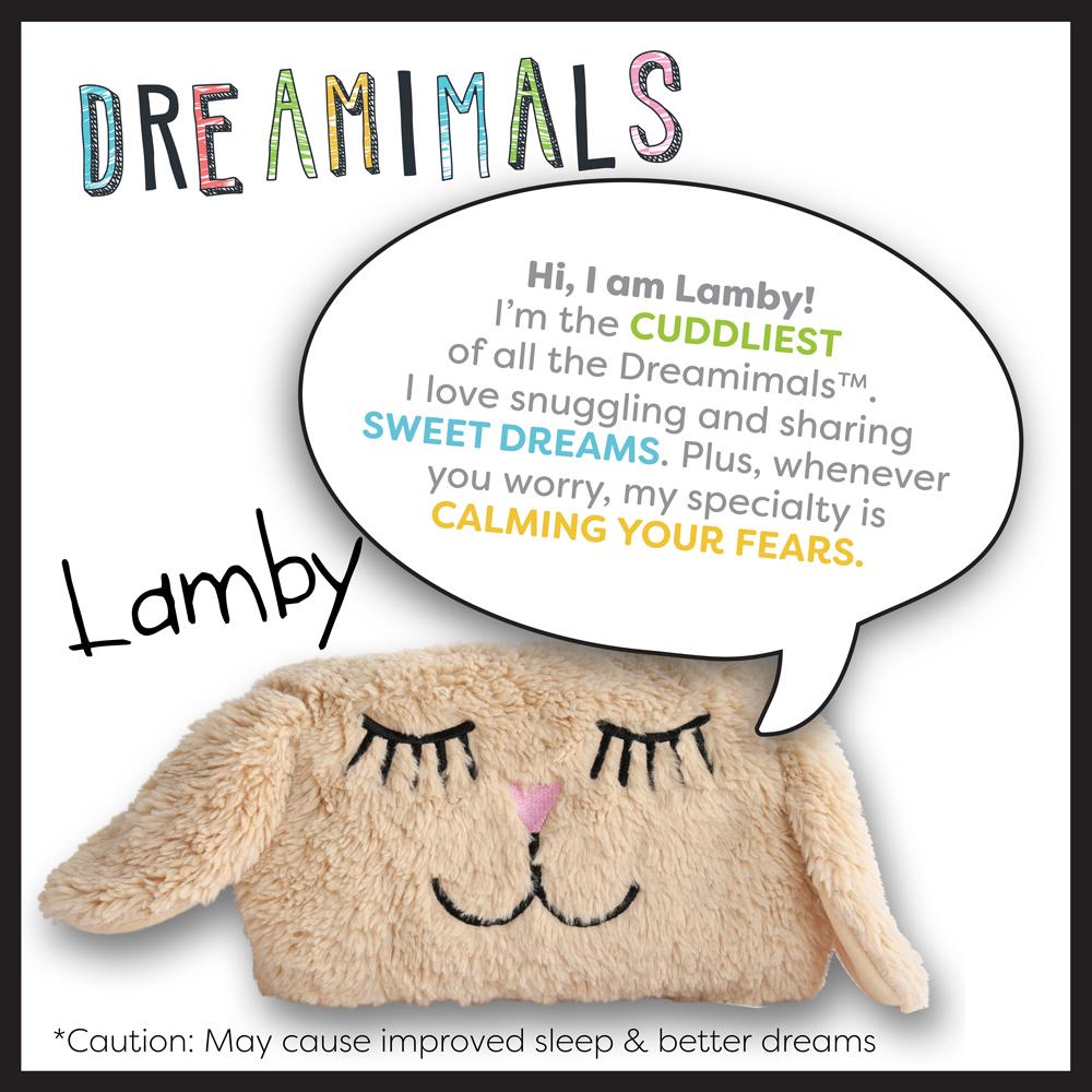 Hi, I am LAMBY! I'm the CUDDLIEST of all the Dreamimals™. I love SWEET DREAMS & I help CALM YOUR FEARS. Just write or draw your sweetest dreams on a Dream Wish note and tuck it inside Lamby's pocket, cuddle up and Dream Good Dreams!