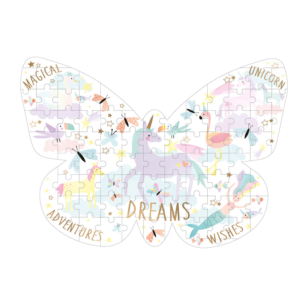 Floss & Rock Pink Fantasy Butterfly Shaped Unicorn Jigsaw Puzzle, 80 Pieces