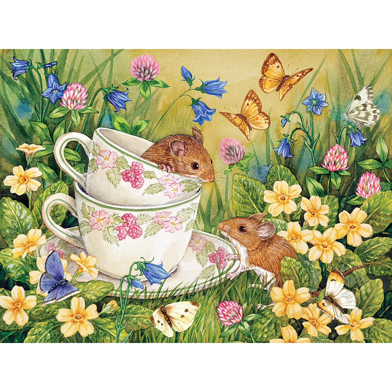 Little mice in teacups, flowers in the field, and fluttering butterflies means it's Tea for Two time! Cobble Hill's Easy Handling 275 piece puzzles have extra large random cut pieces to make gripping the pieces easier and the reference poster will help you find your way through the adventure.