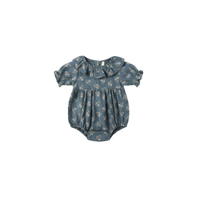 Quincy Mae Blue Floral Collared Romper