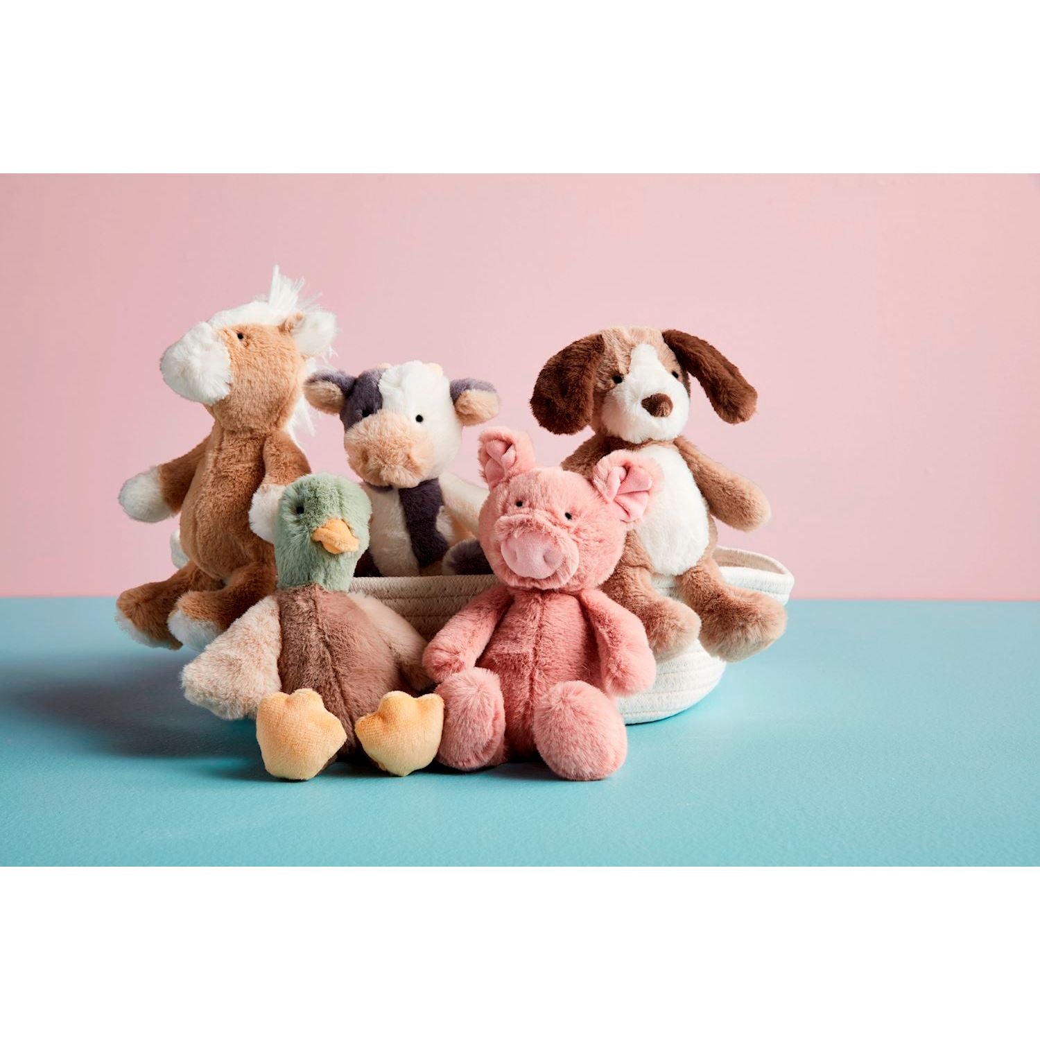 Soft, snuggly, and full of farmyard charm! These Farm Plush Rattle Pals from Mud Pie are the perfect companions for little ones. Each cuddly pal—duck, cow, puppy, pony, or pig—features gentle rattling sounds to engage and delight babies. Sized just right for tiny hands, these plush toys encourage sensory play and are perfect for snuggles at home or on the go. Sold assorted—collect them all for a whole barnyard of fun! Sold Individually - if you purchase online and there is a specific style you would like, please email us at hello@maisonbabyandkids.com and we will do our best to accommodate your request based on current availability and inventory.