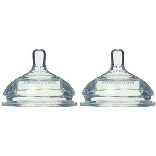 The world continues to change right before our eyes. But why is it that baby bottles are the same old unflattering tools? After all, isn't the baby bottle one of the first objects that your baby experiences through all five senses? Why should mothers have to worry about toxic plastic & colic-inducing design for something so basic & important? We found no good reason & decided to challenge the status quo. In our voyage, we've learned an important lesson. Inspiring products are born only when we think with a mother's heart & experience through a baby's eyes. We proudly introduce ComotomoTM Replacement Nipples. Comotomo Nipple Packs are replacements specifically designed for Comotomo Baby Bottles. Each pack comes with 2 silicone nipples designed to most closely mimic natural breastfeeding. Our naturally shaped, soft, silicone nipples are ideal for babies who have trouble transitioning from nursing to bottle feeding. Each replacement nipple also has two truly innovative vents that are built in to prevent colic, while totally eliminating leaking issues. ComotomoTM Replacement Nipples grow with your baby, and are available separately in 4 stages: truly Slow Flow (1 Hole) for ages birth-3 months, Medium Flow (2 Hole) for ages 3-6 months, Fast Flow (3 Hole) for ages 6+ months, and Variable Flow (Y-Cut) for ages 6+ months (thicker fluids). Easy Feedings, Happy Baby: - Naturally shaped, soft, silicone nipples - ideal for breastfed babies - Designed to eliminate nipple confusion issues - Dual anti-colic vents prevent unwanted air intake and reduce colic - ComotomoTM replacement Nipples grow with your baby Easy to Clean: - Safe in microwave, boiling water, dishwashers and sterilizers Safe Feeding: - Made of 100% safe, hygienic silicone