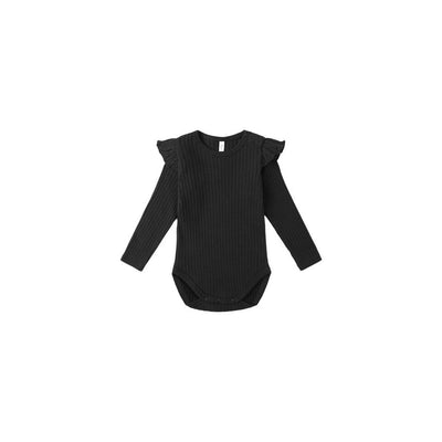 Rylee + Cru Shoulder Ruffle Bodysuit, Black