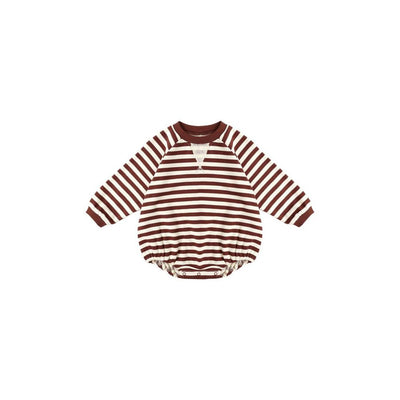 Rylee + Cru Crewneck Romper, Burgundy Stripe