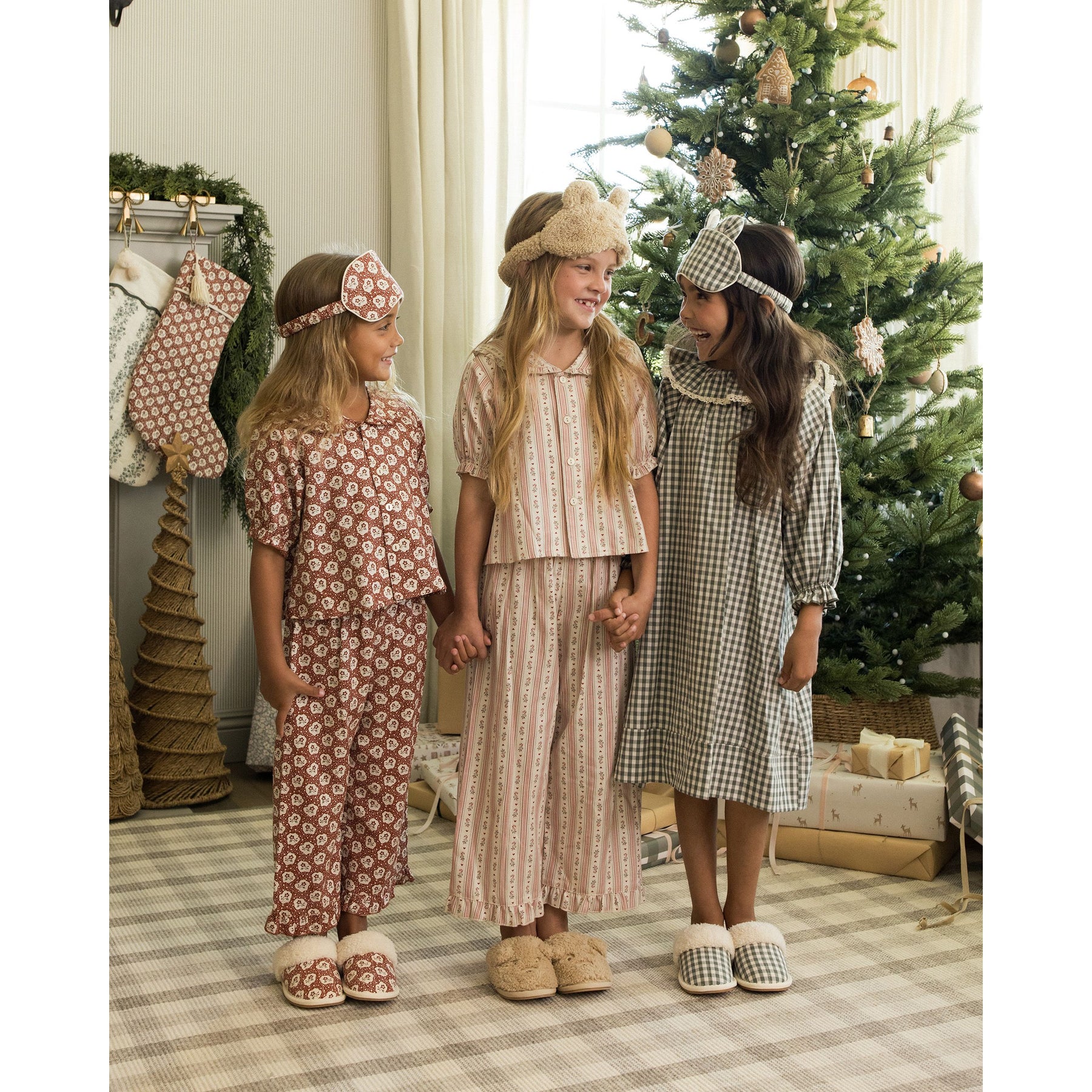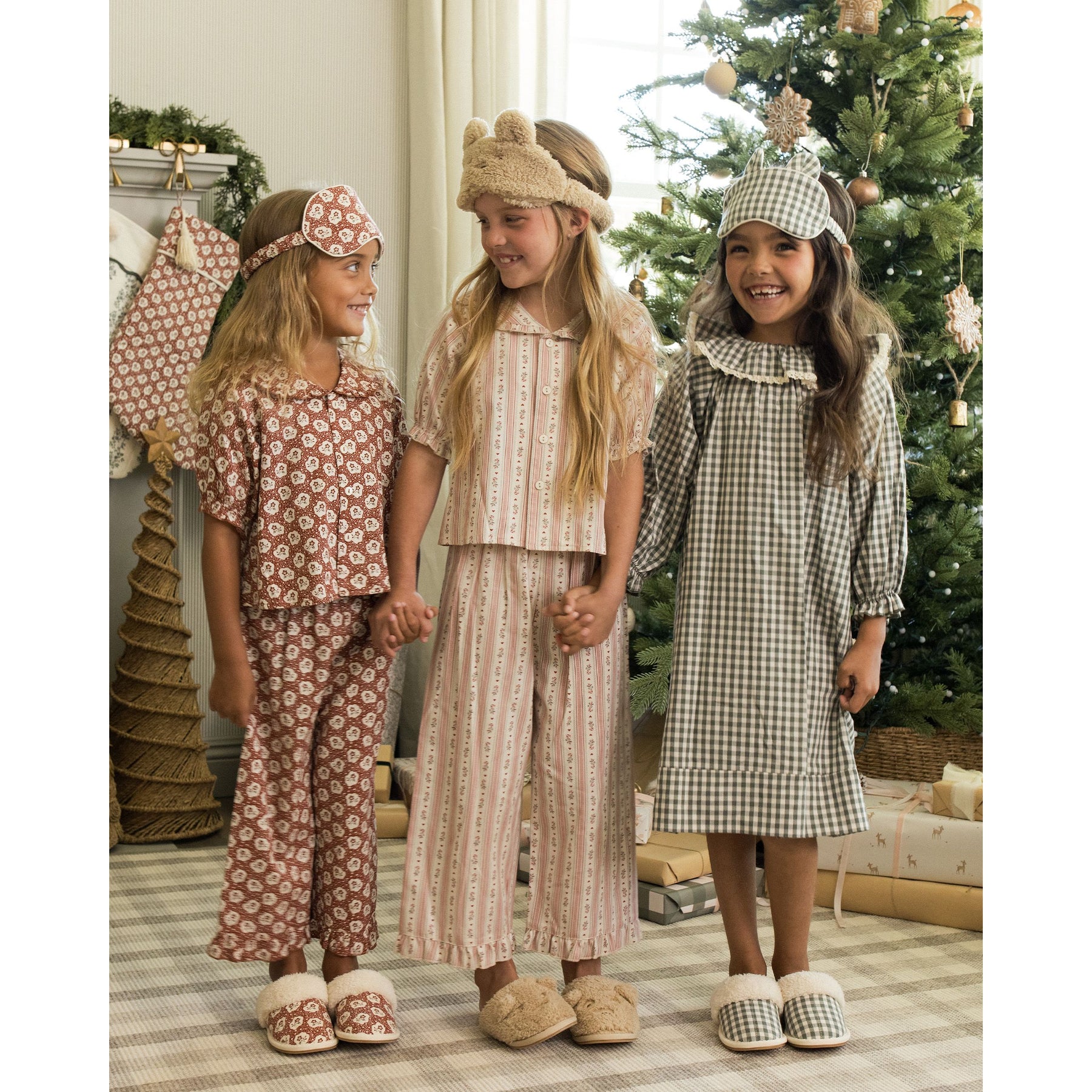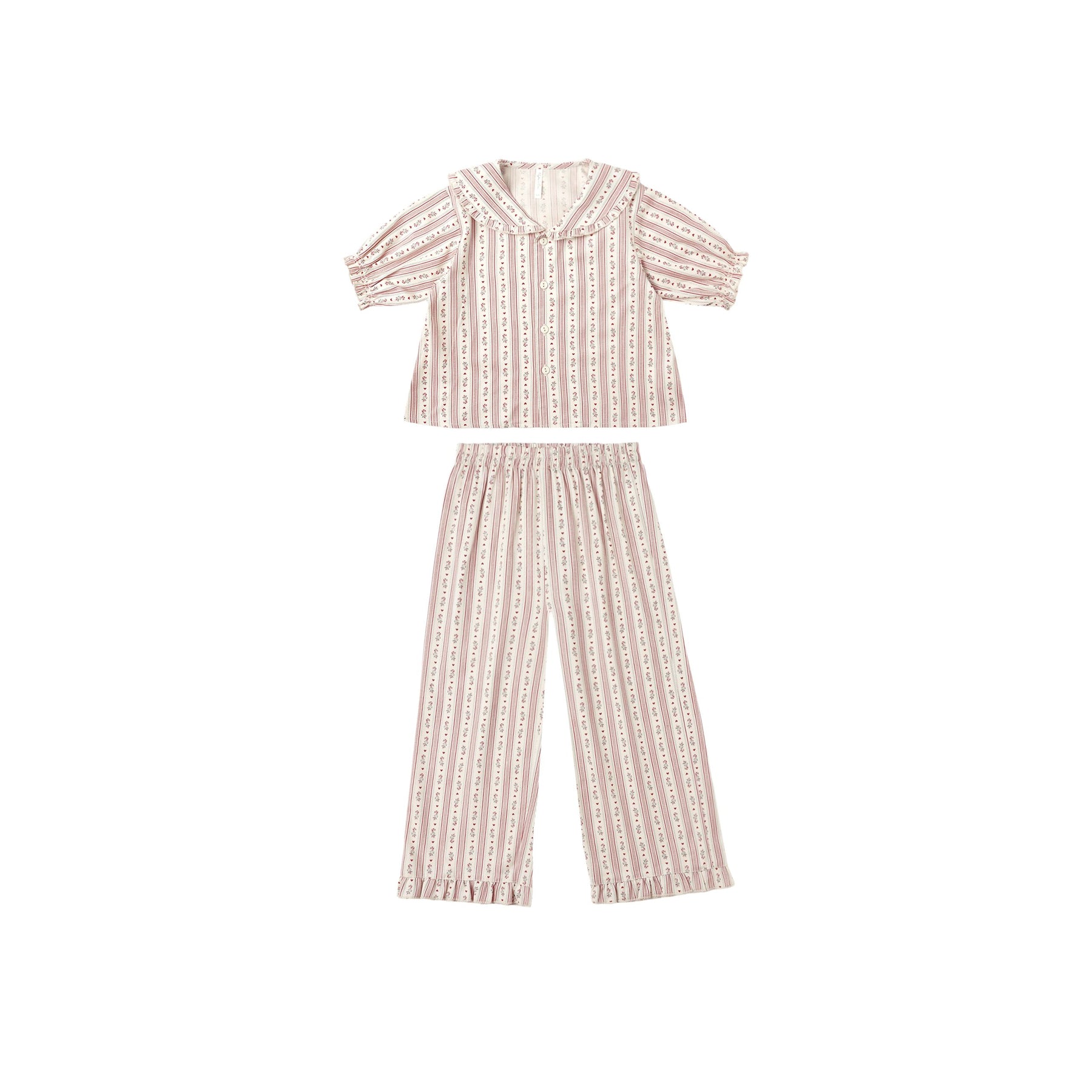 Our Ruffle Pajamas are the perfect blend of cute and cozy. This woven pajama set features a charming ruffle-collar top paired with wide-leg pants designed with an elastic waistband for maximum comfort. So soft and stylish, you’ll want to lounge in them all morning long!