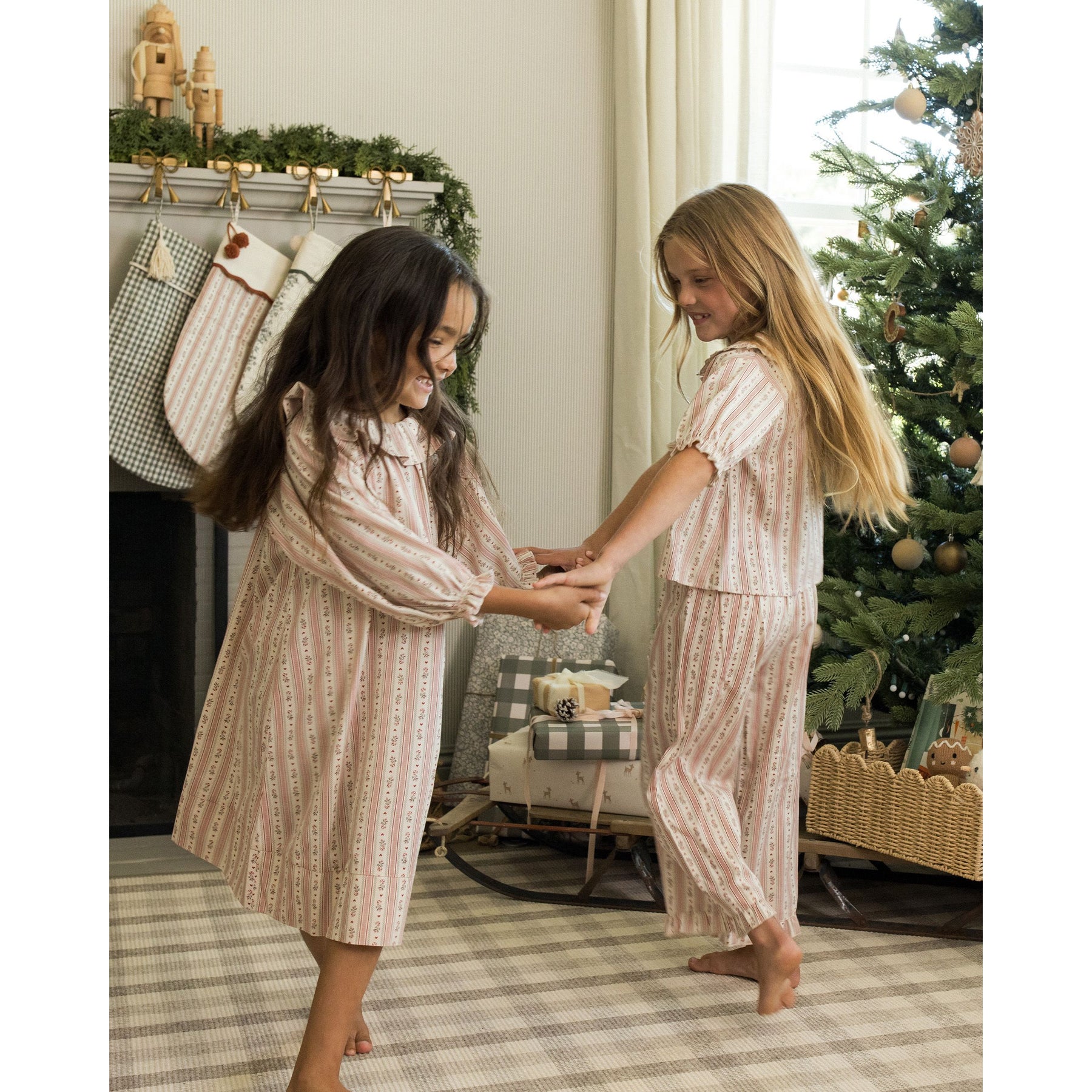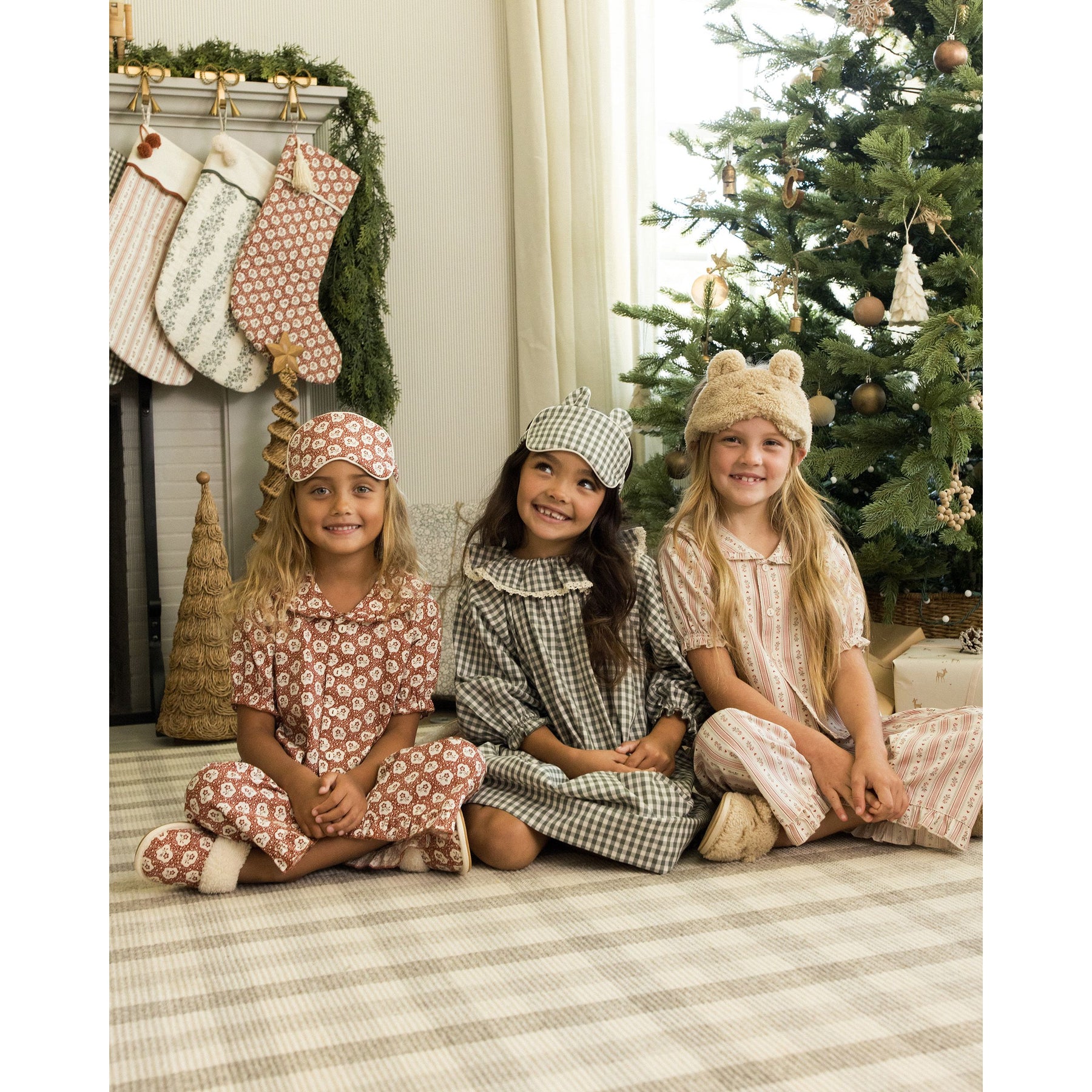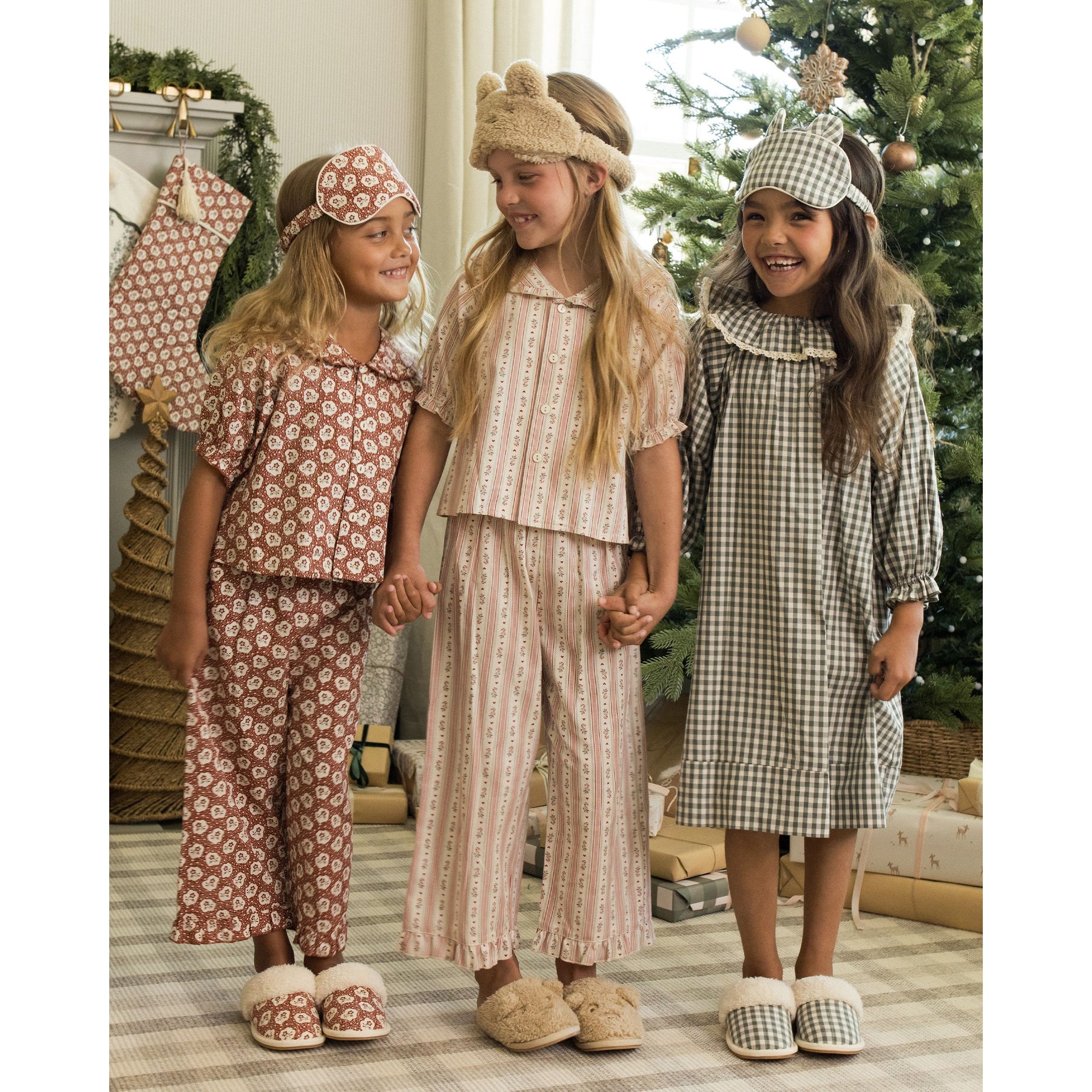 Our Ruffle Pajamas are the perfect blend of cute and cozy. This woven pajama set features a charming ruffle-collar top paired with wide-leg pants designed with an elastic waistband for maximum comfort. So soft and stylish, you’ll want to lounge in them all morning long!