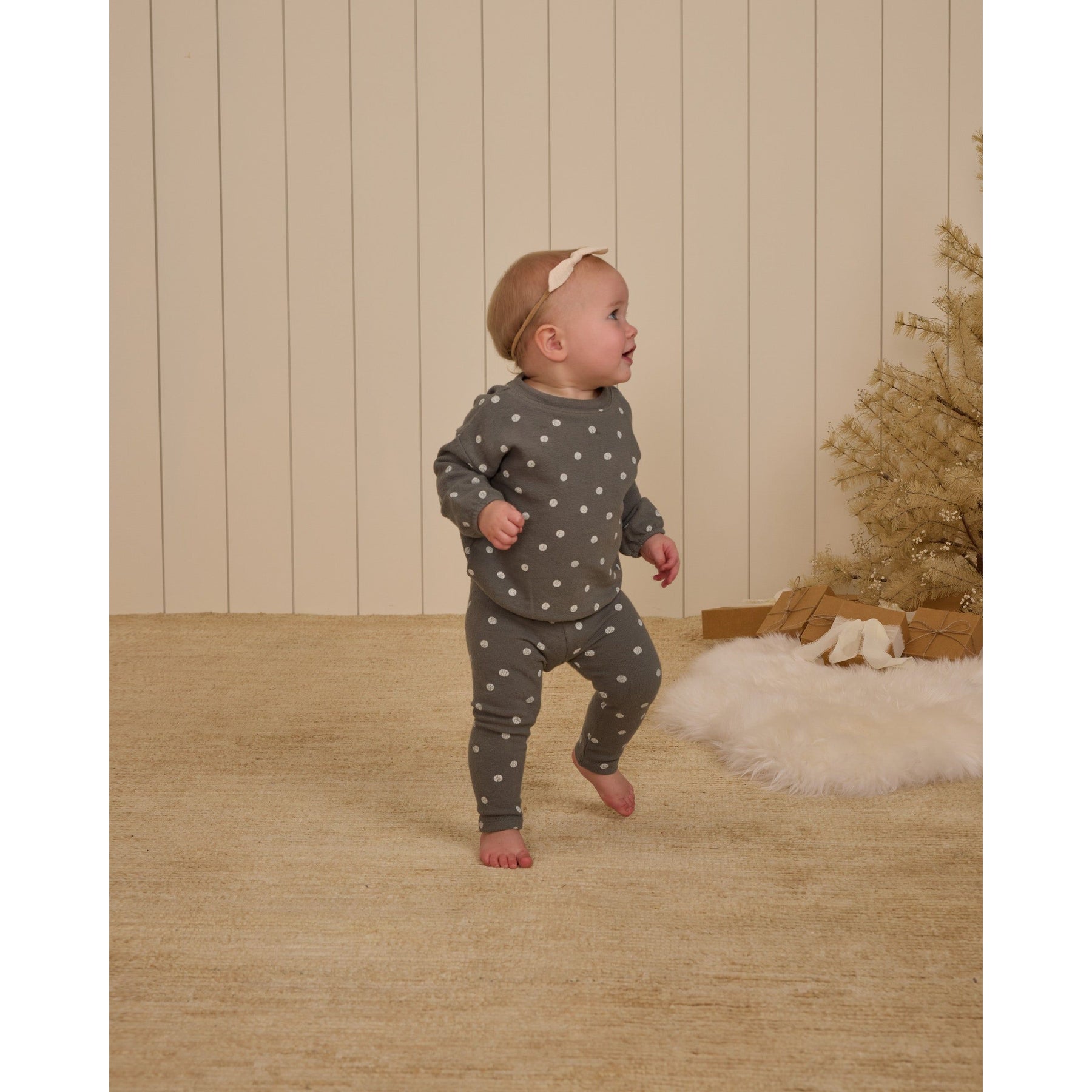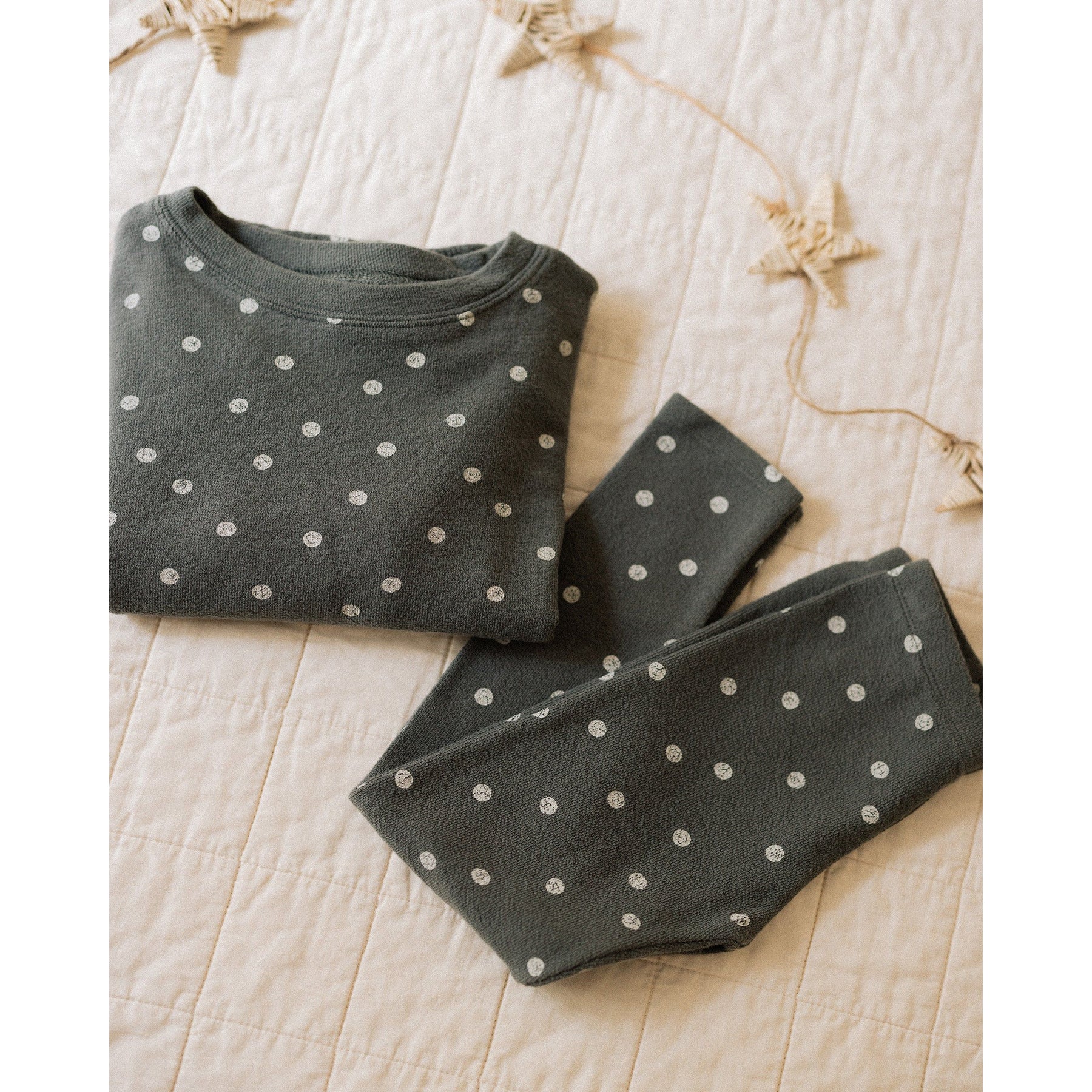 Rylee + Cru Spongey Knit Set, Forest Polka Dot