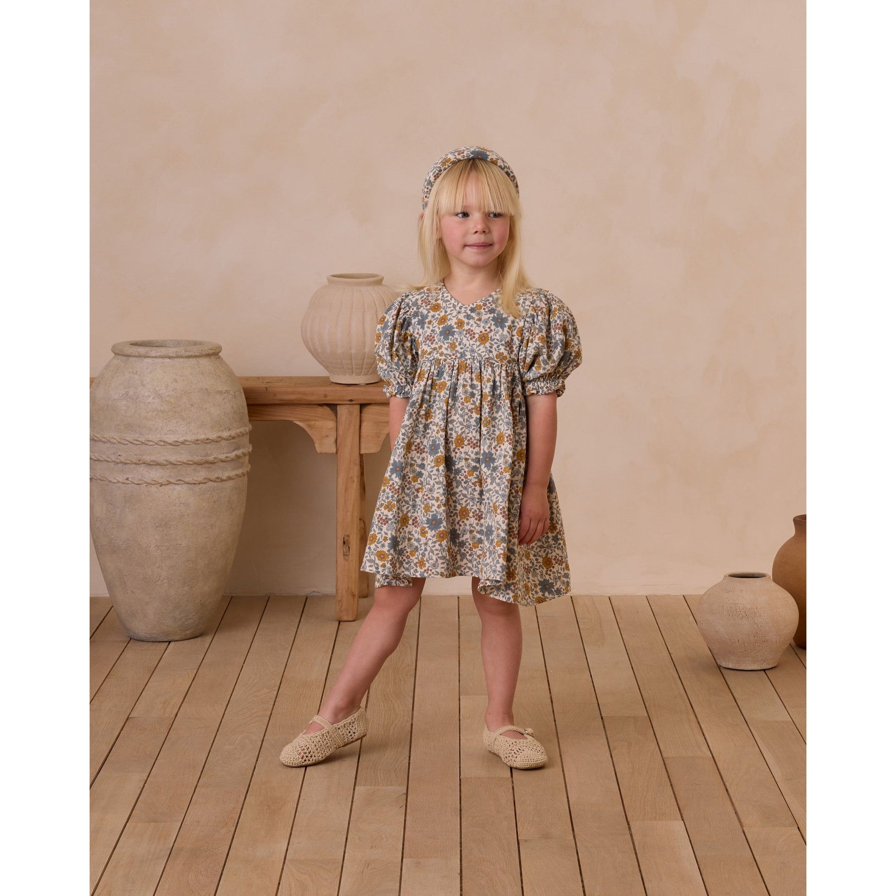 This darling v-neck dress features puff sleeves and a babydoll inspired silhouette.