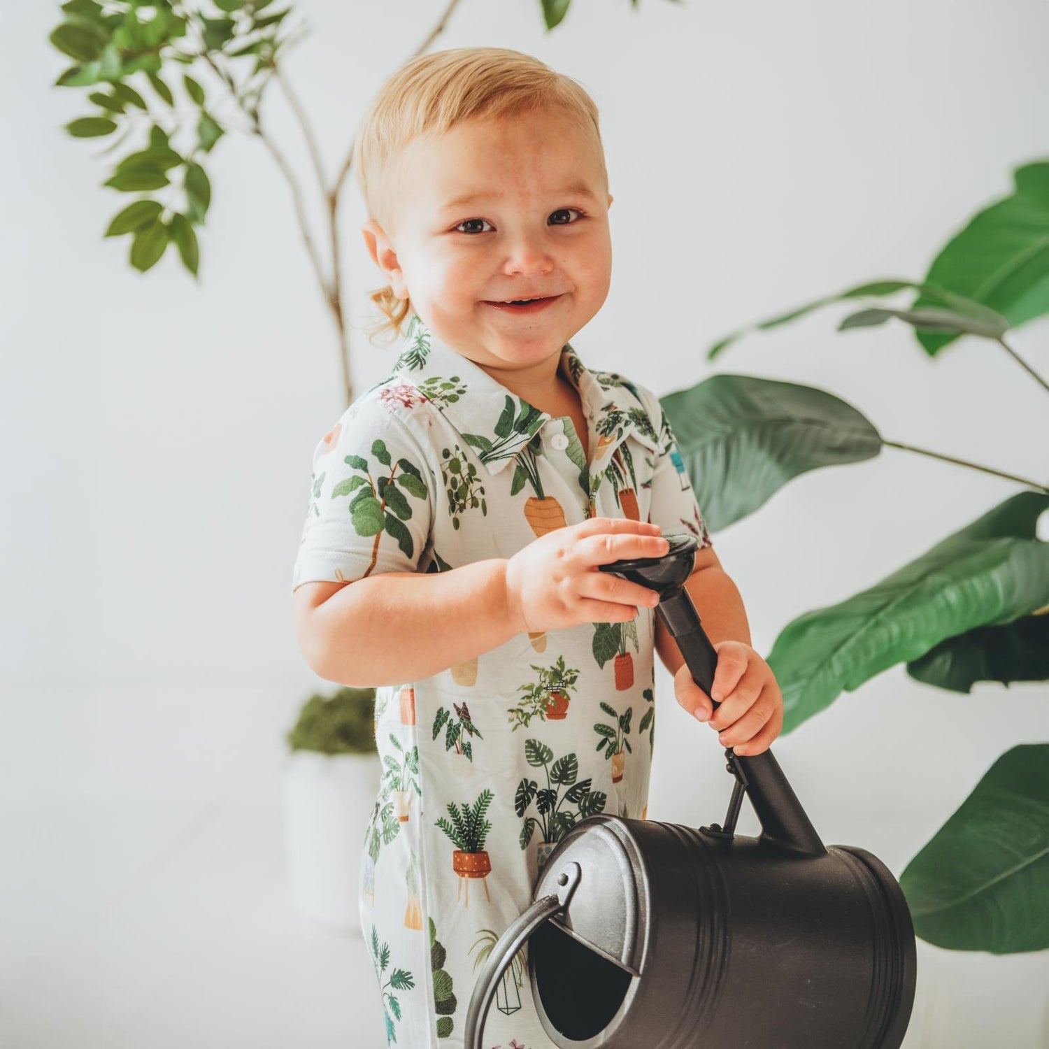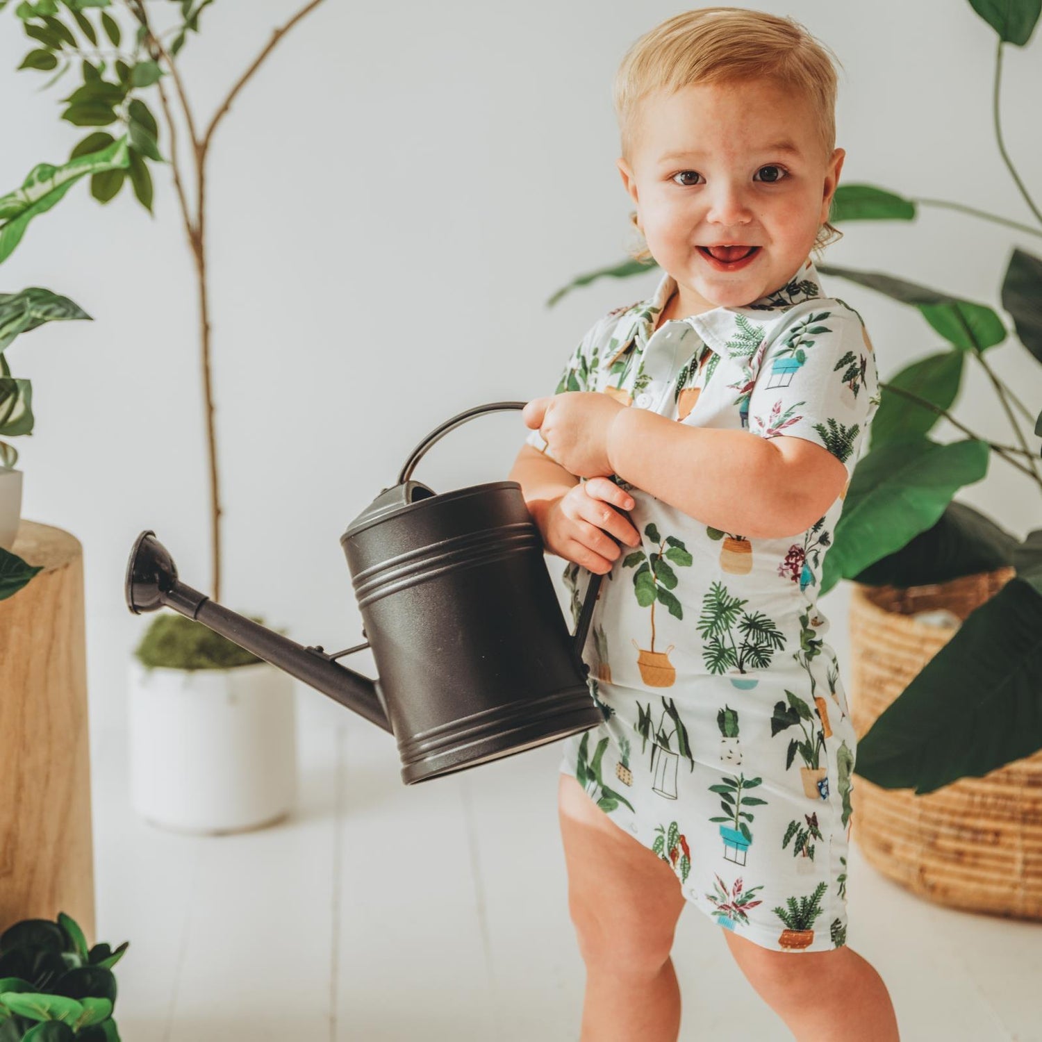 Our super comfy Romper with an adorable Polo collar will be the talk of the play park! He will love our fun prints and colors and you will love the ease of a one piece outfit! Snaps at the bottom for quick changing. Pair with our coordinating stroller blanket for a shower gift everyone will love!